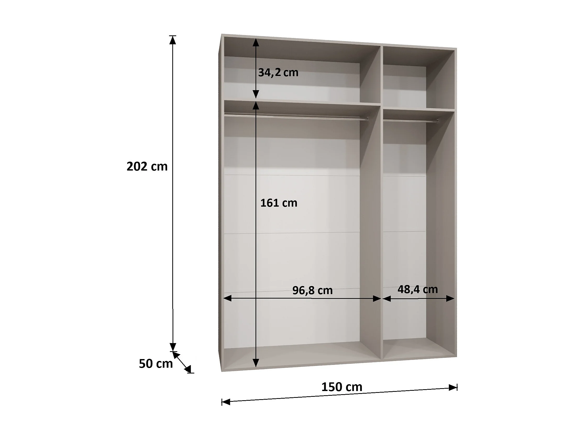 Armoire à portes battantes Sandi 1 300 (150x2) / 202 / 52 (Noir + poignées: Gold)