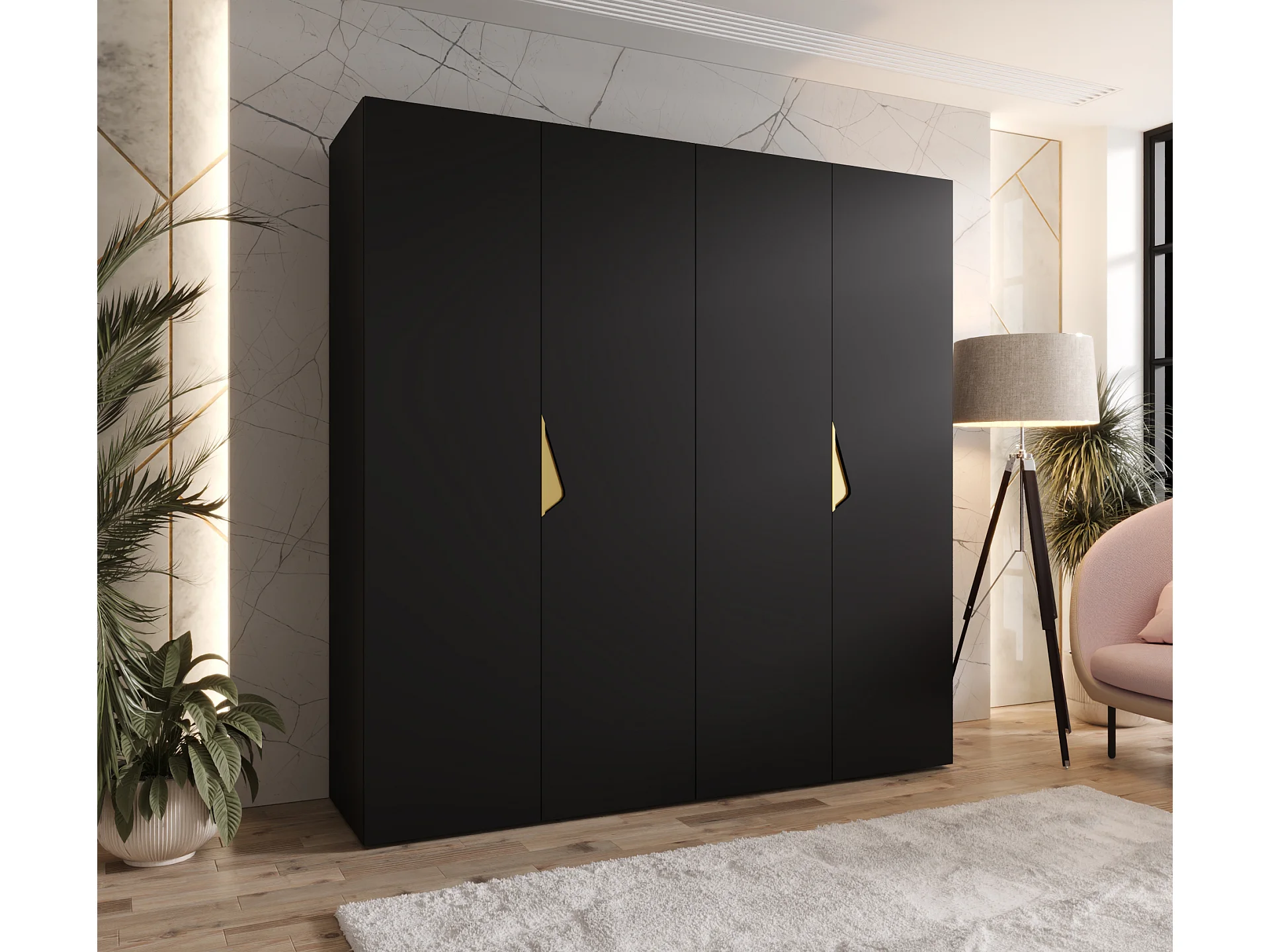 Armoire à portes battantes Andrew 2 200 / 202 / 52 (Noir + poignées: Gold)
