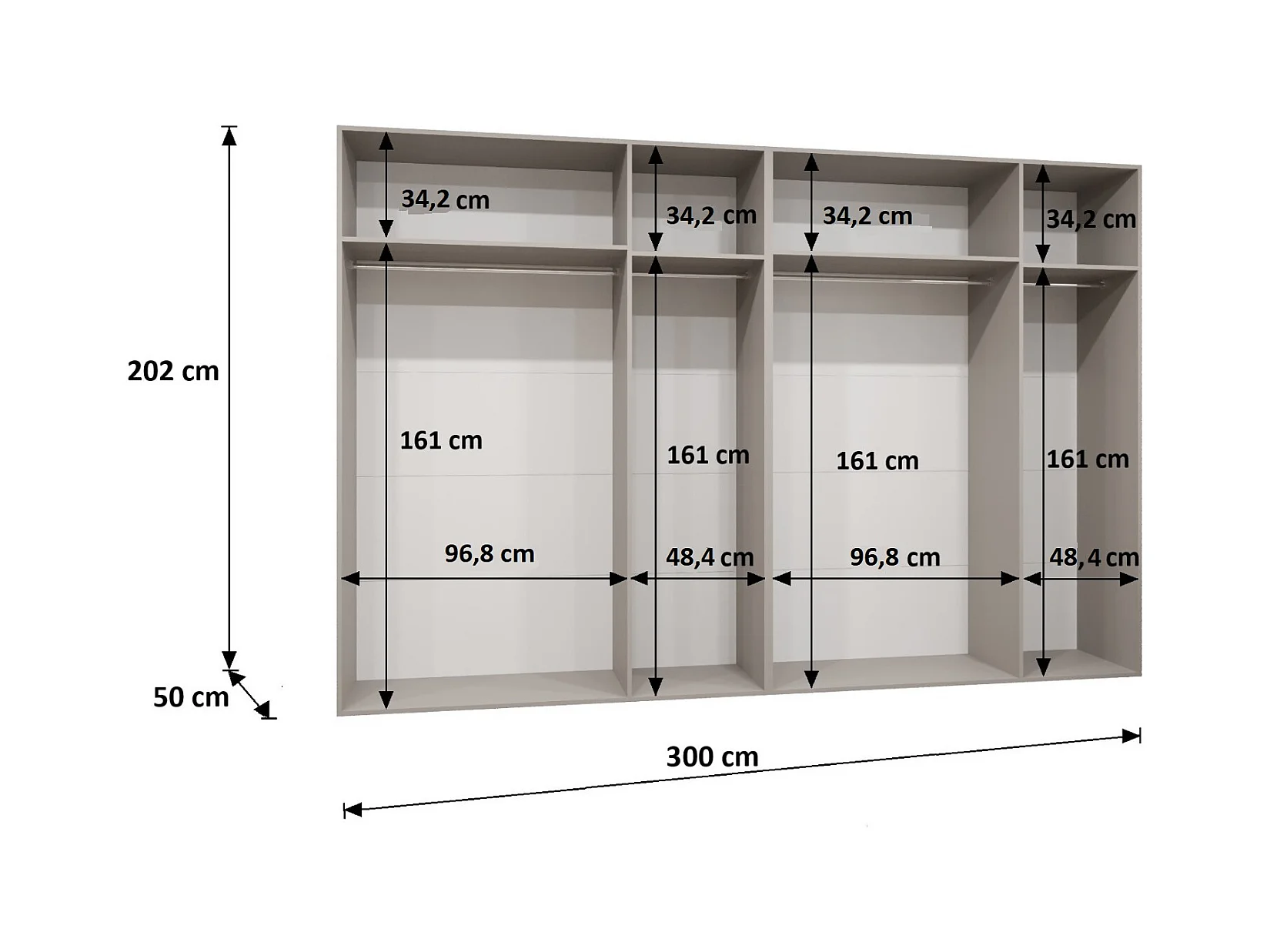Armoire à portes battantes Sandi 1 300 (150x2) / 202 / 52 (Noir + poignées: Cachemire)