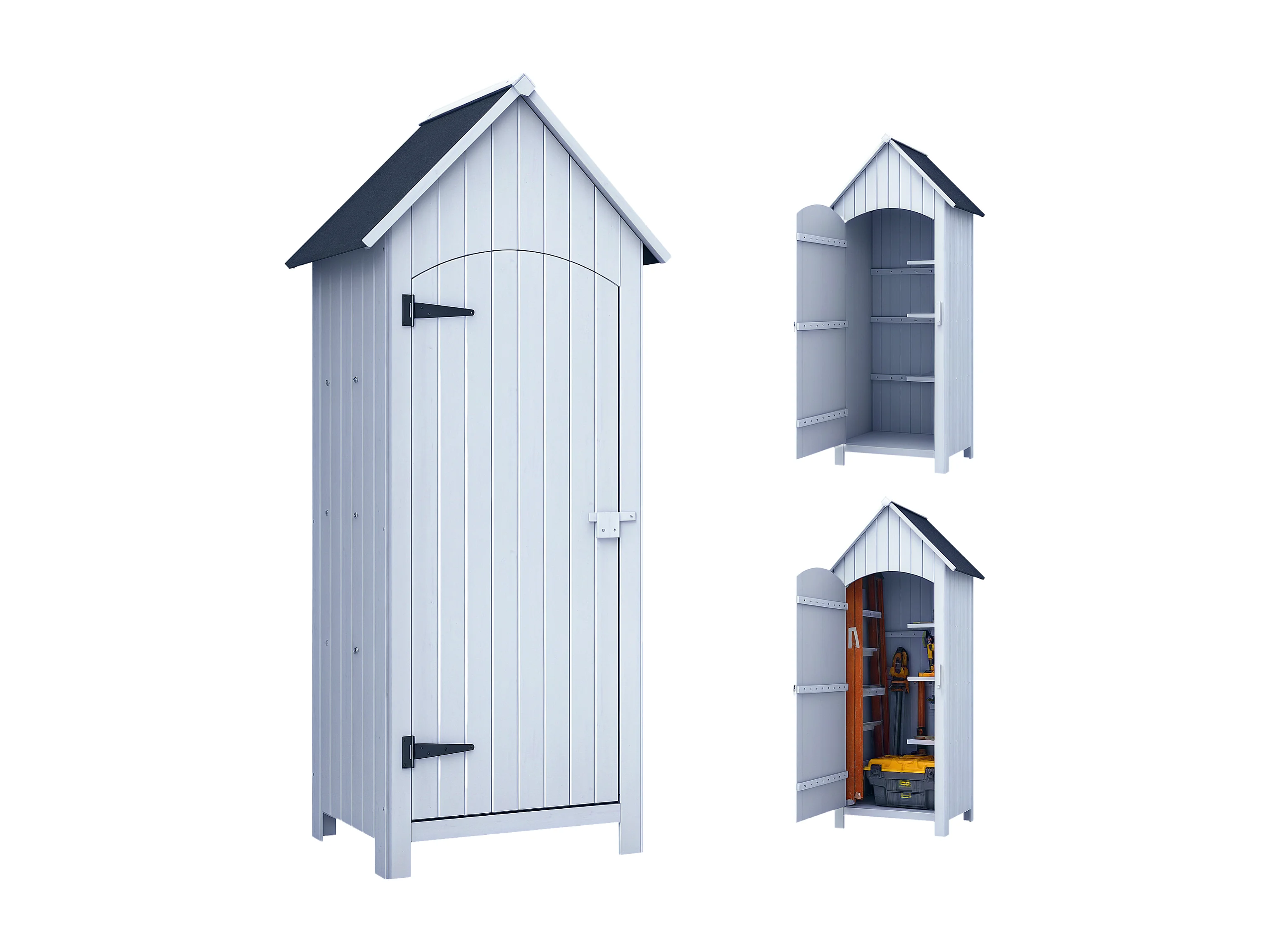 Armoire abri de jardin remise pour outils 3 étagères porte loquet toit pente bitumé dim. 77L x 54l x 179H cm bois sapin pré-huilé blanc