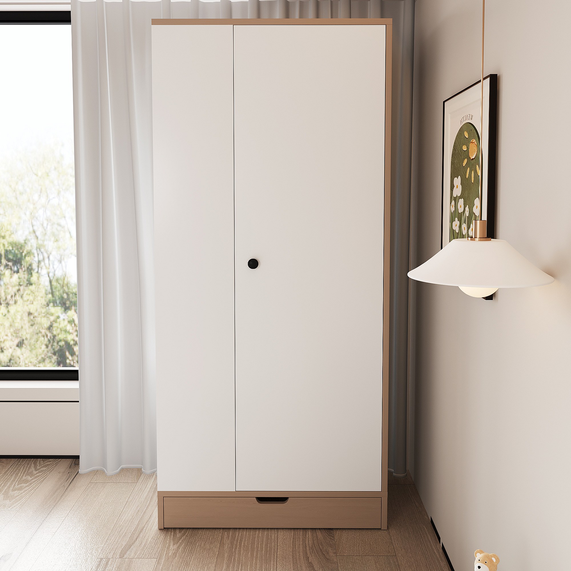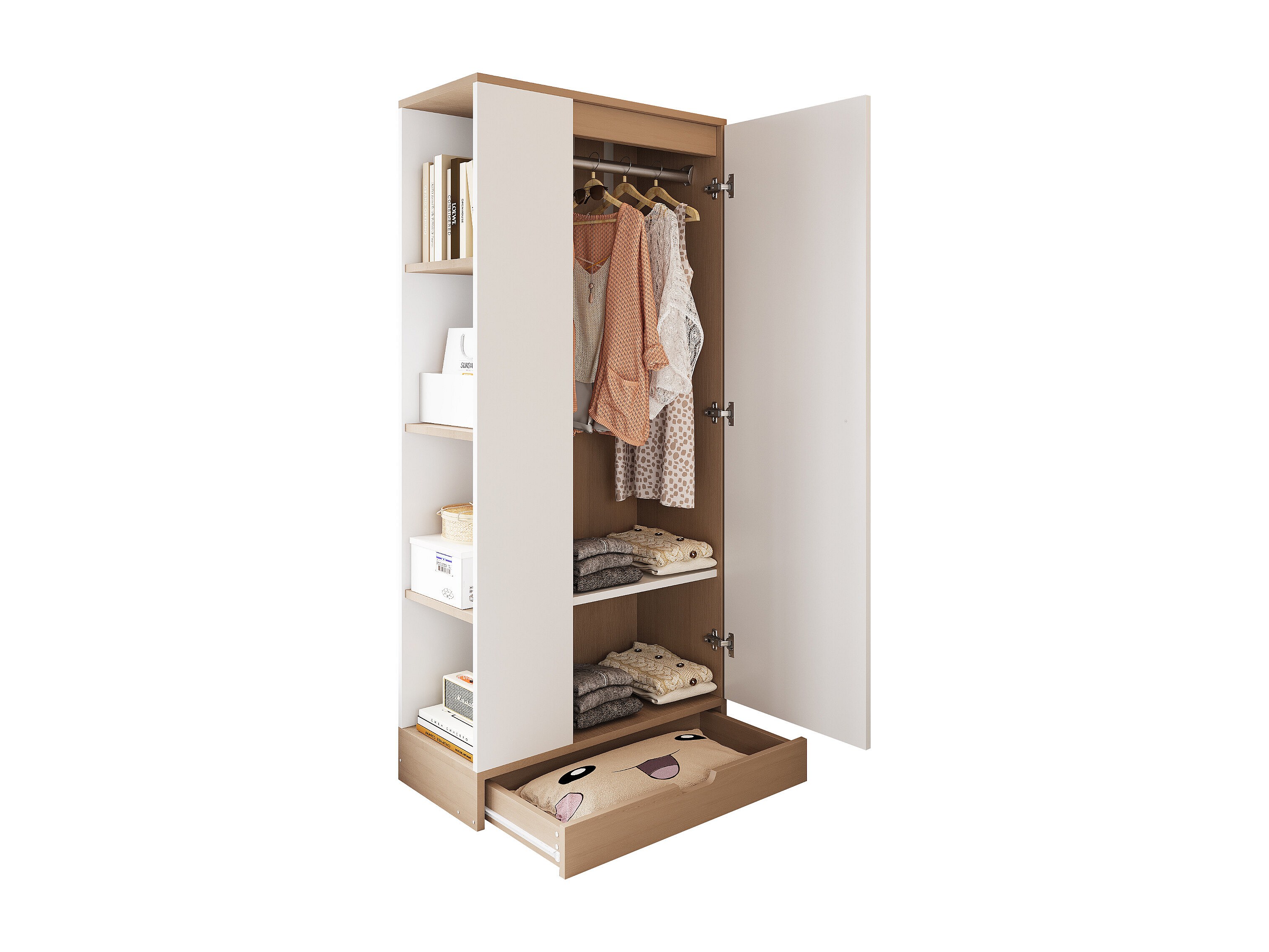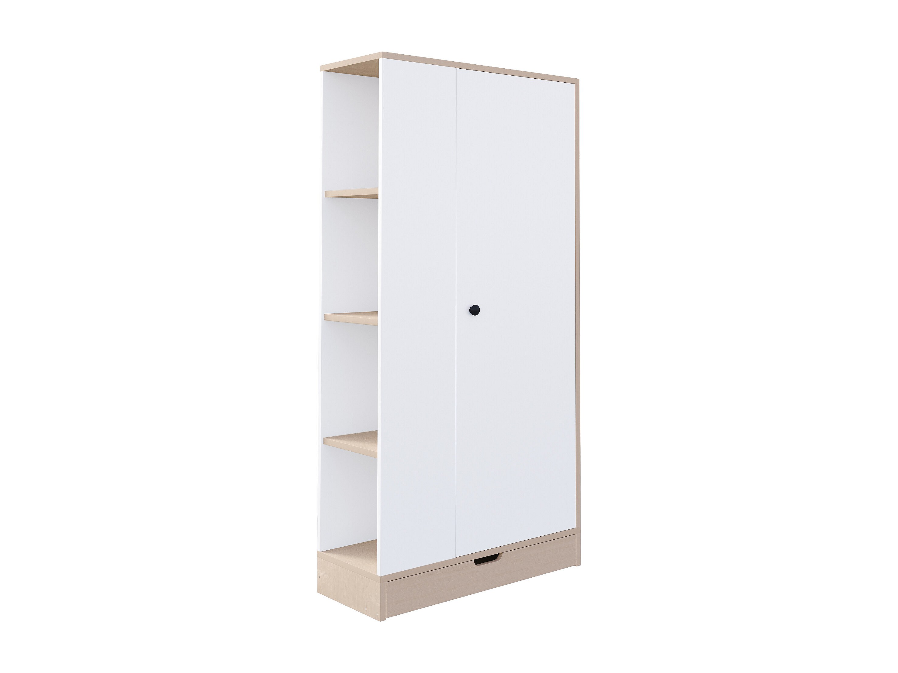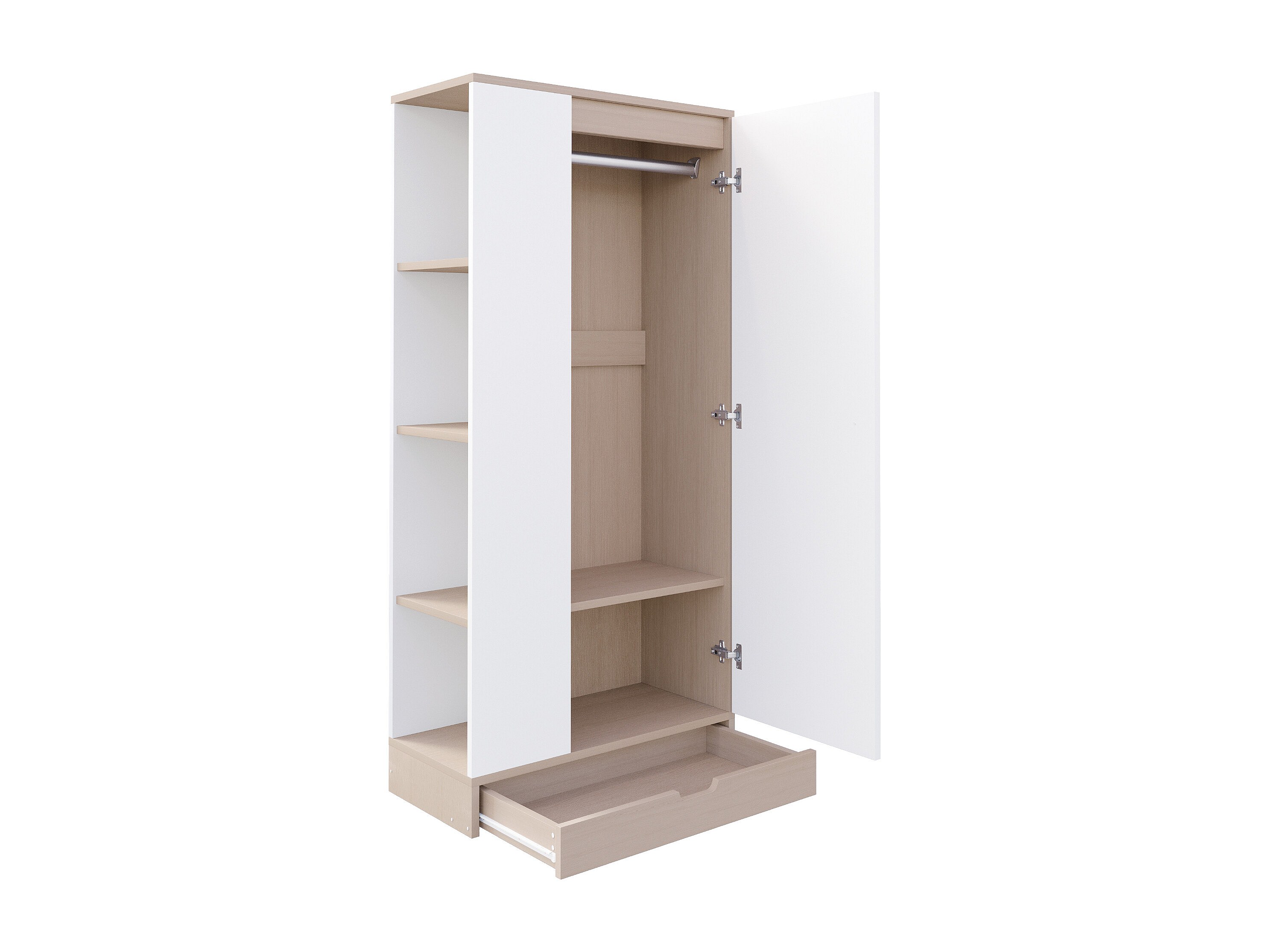 Armoire avec 1 porte + étagères de rangement + 1 tiroir - 70 x 40 x 170 cm - bois - blanc + naturel
