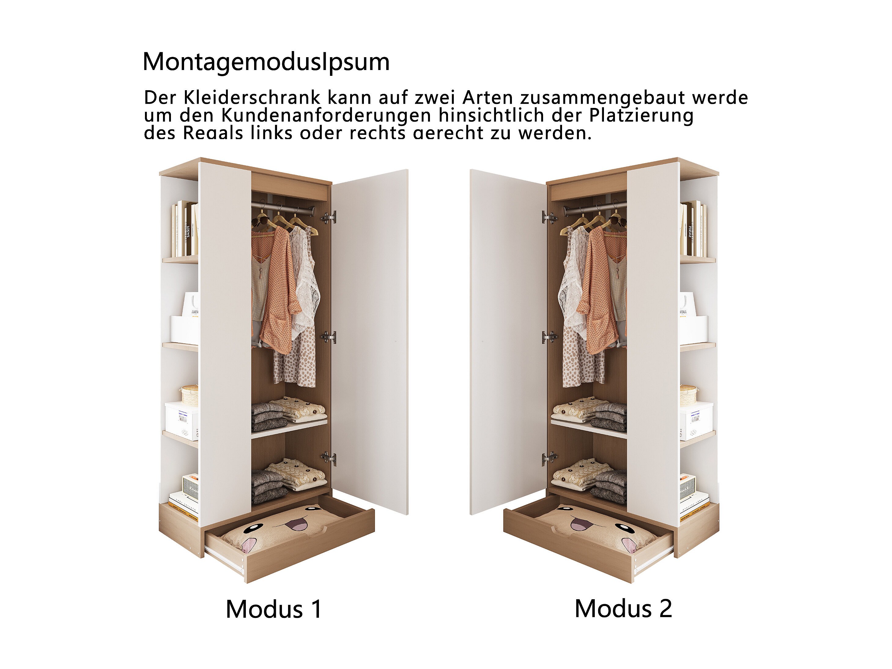 Armoire avec 4 tiroirs et compartiments de rangement - espace vêtements ouvert - bois - naturel