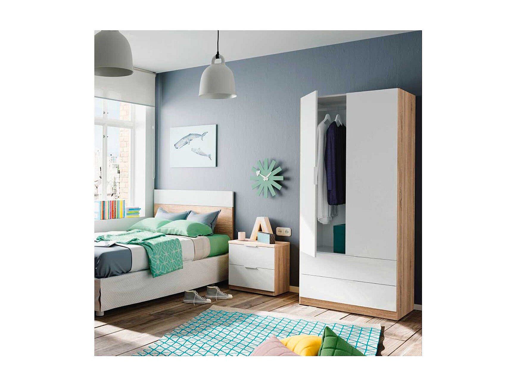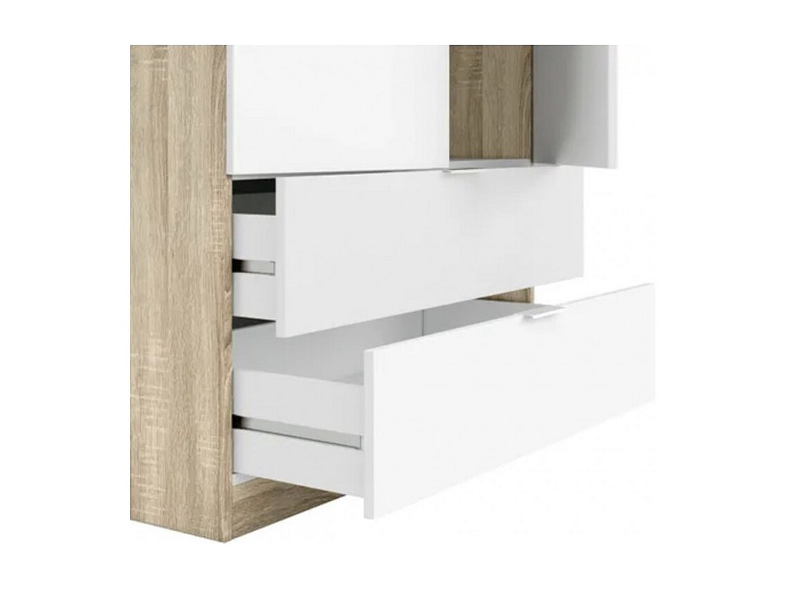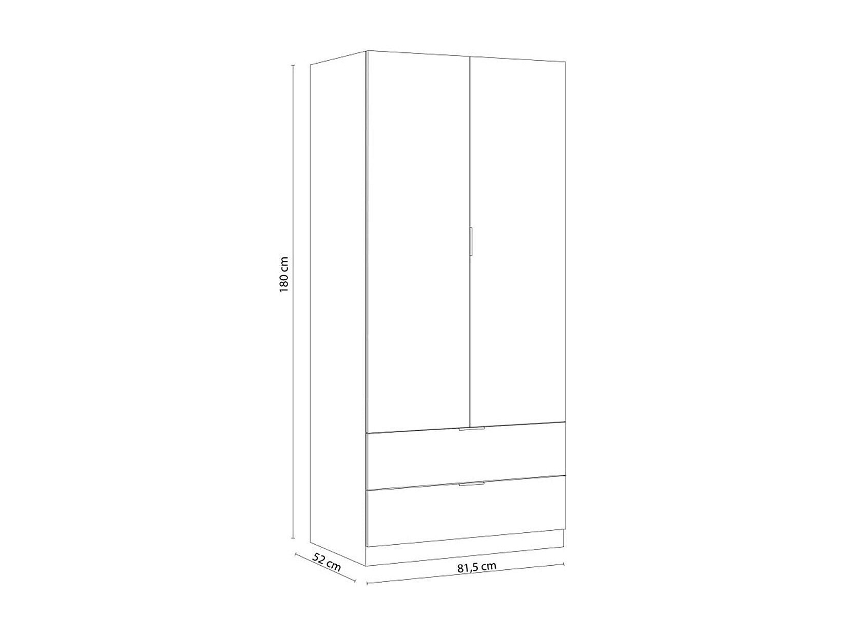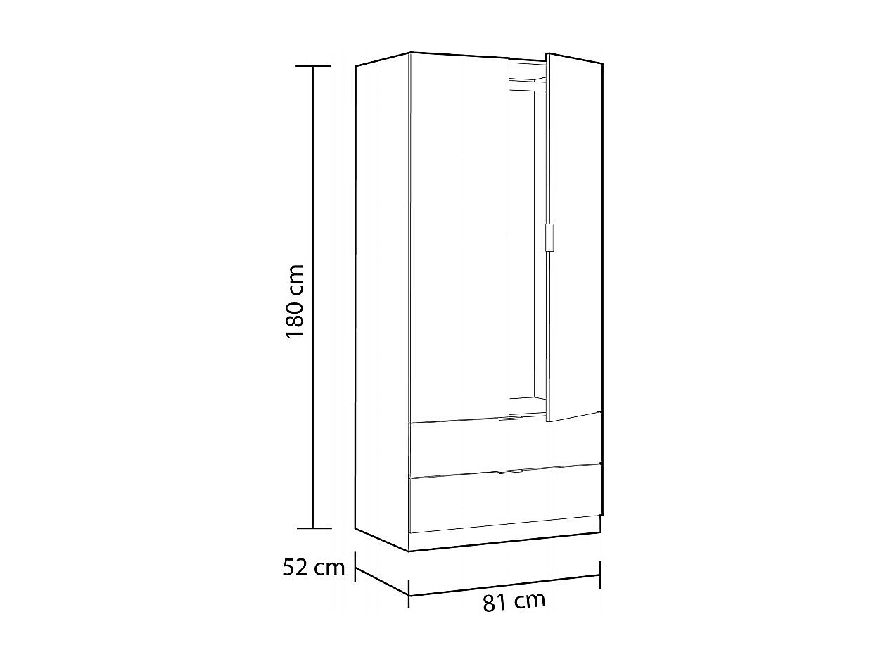 Armoire avec 2 portes et 2 tiroirs, Finition blanc et bois, 81 cm (L) x 180 cm (H) x 52 cm (P)