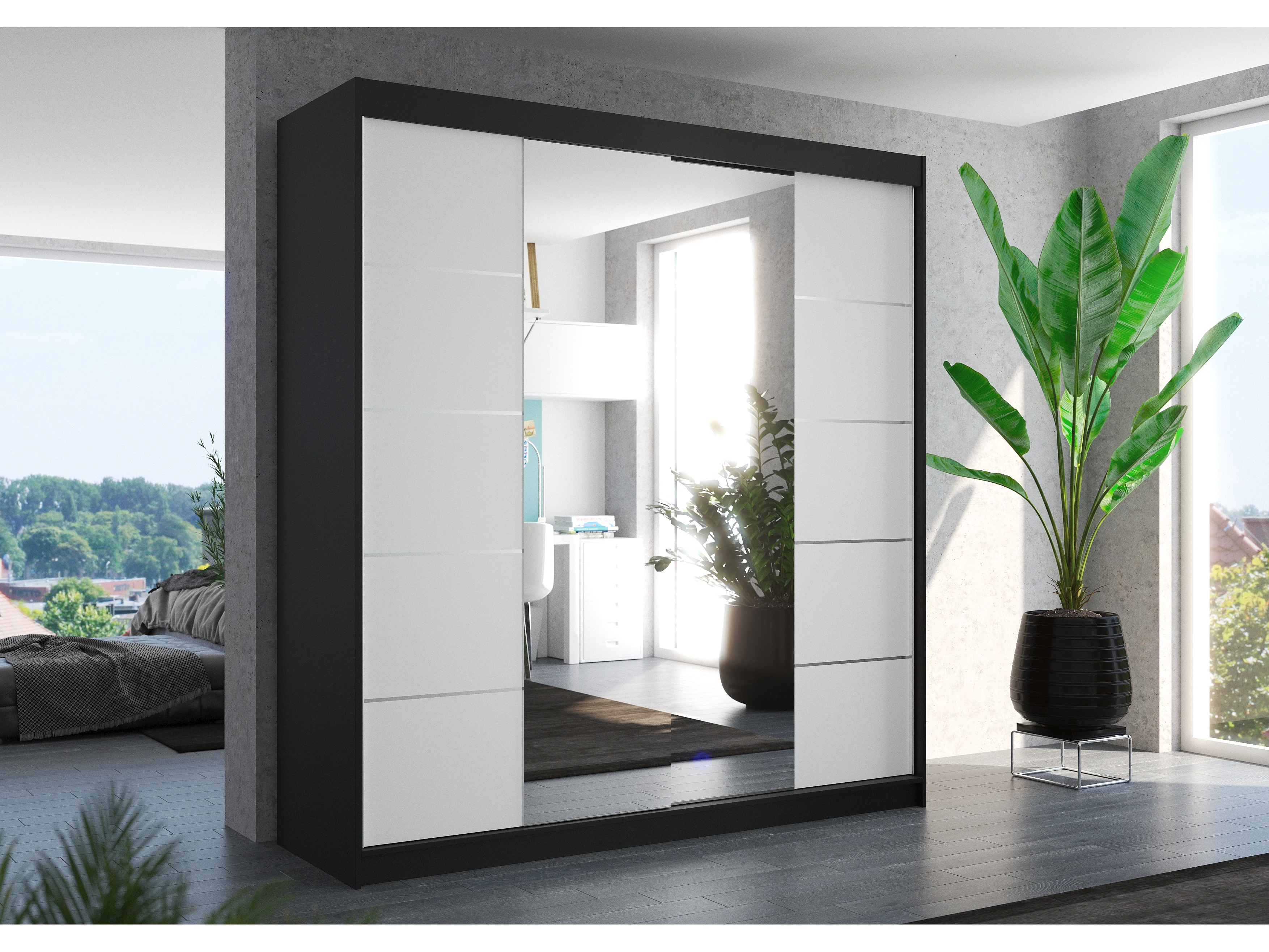 Armoire chambre adulte 2 portes coulissantes noir et blanc avec miroir Olivia 200cm