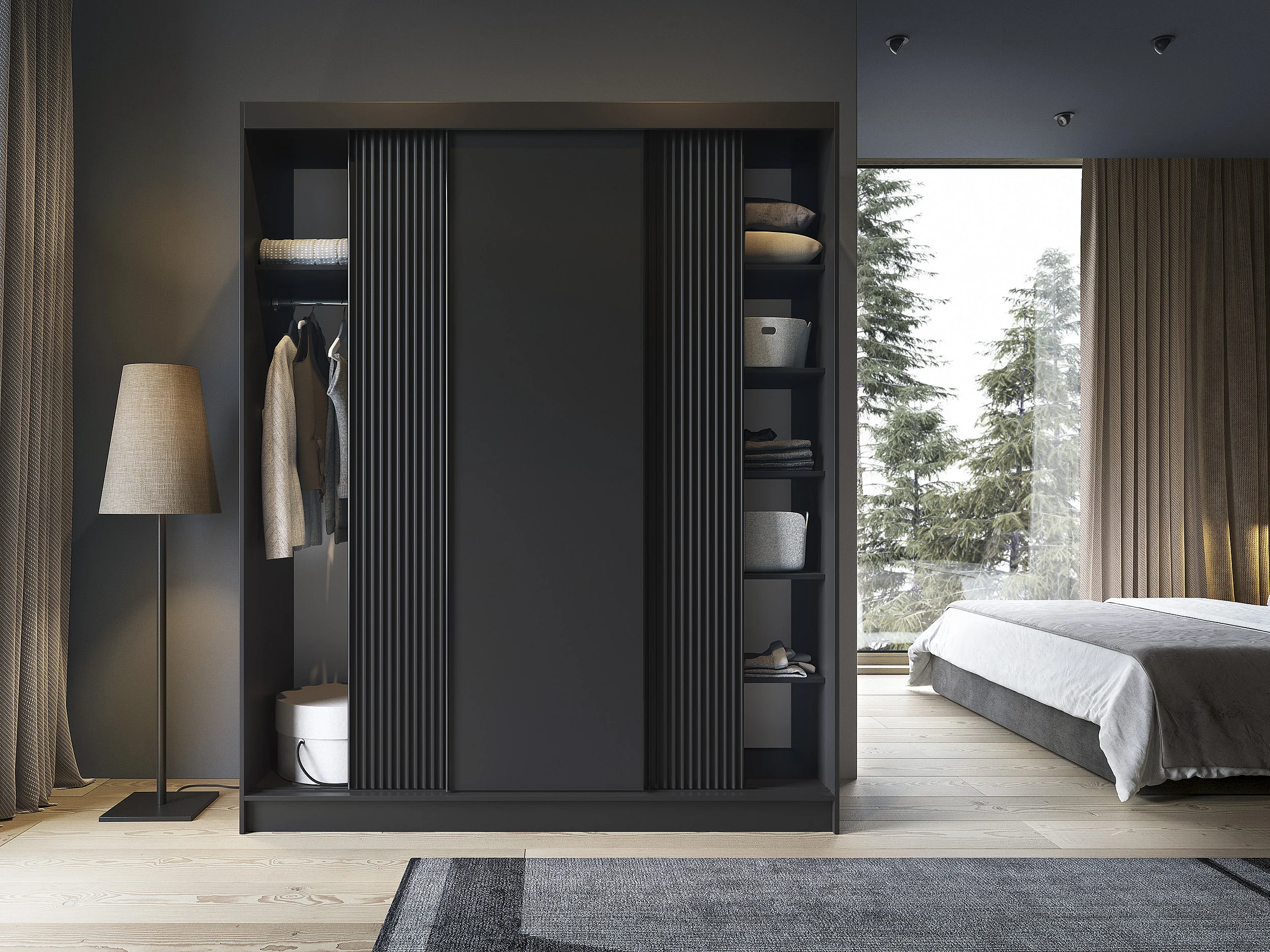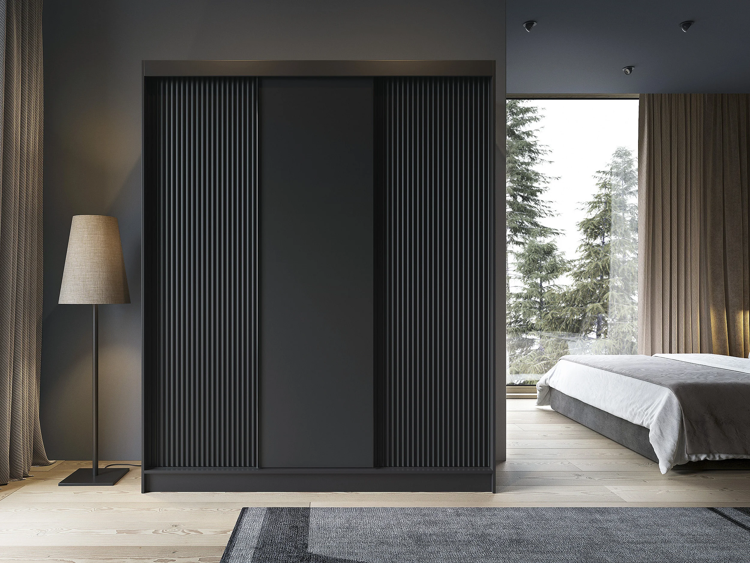 Armoire coulissante GAMA – Élégance noire & fonctionnalité contemporaine-Largeur 180 cm