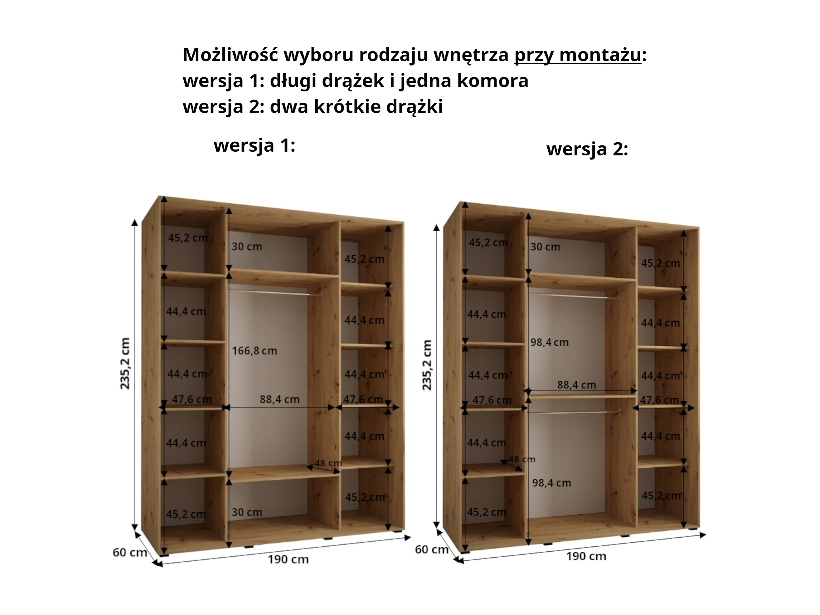 ARMOIRE DAKOTA 12 À PORTES COULISSANTES 235,2/190/60 3 portes (Cashmere/Noir)