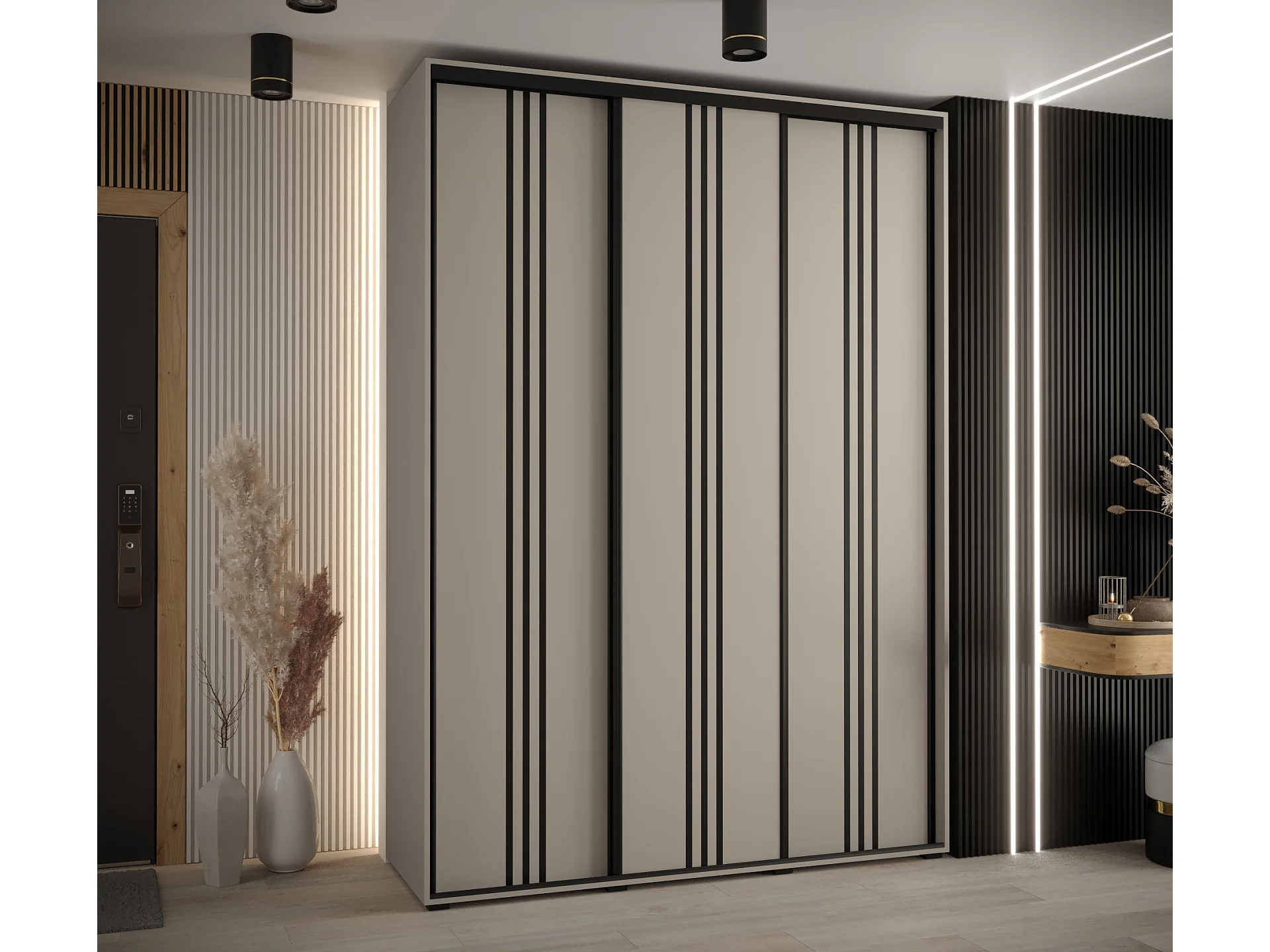 ARMOIRE DAKOTA 6 À PORTES COULISSANTES 235,2/170/45 3 portes (Cashmere/Noir)