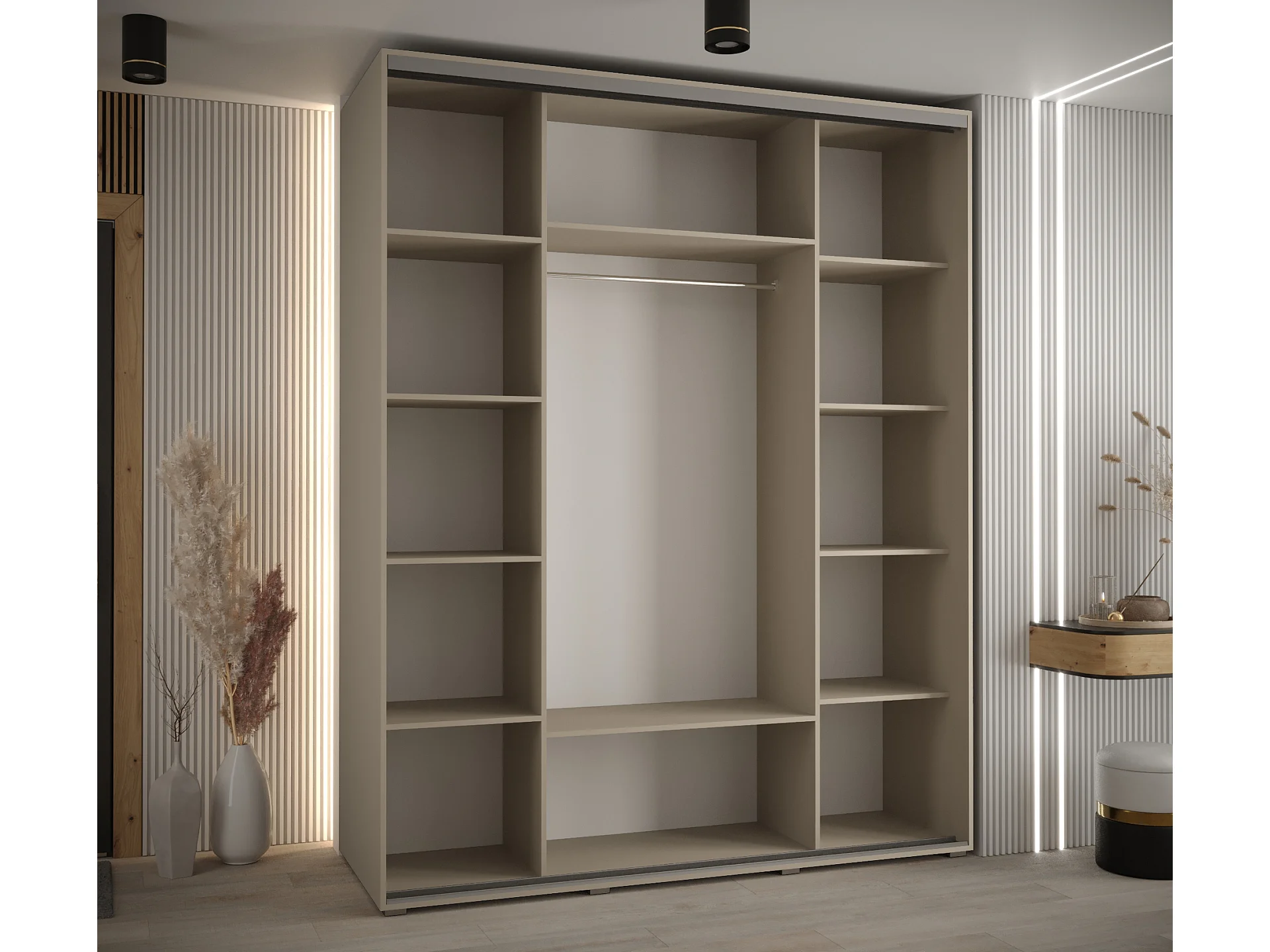 ARMOIRE DAKOTA 7 À PORTES COULISSANTES 235,2/190/60 3 portes (Cashmere/Noir)