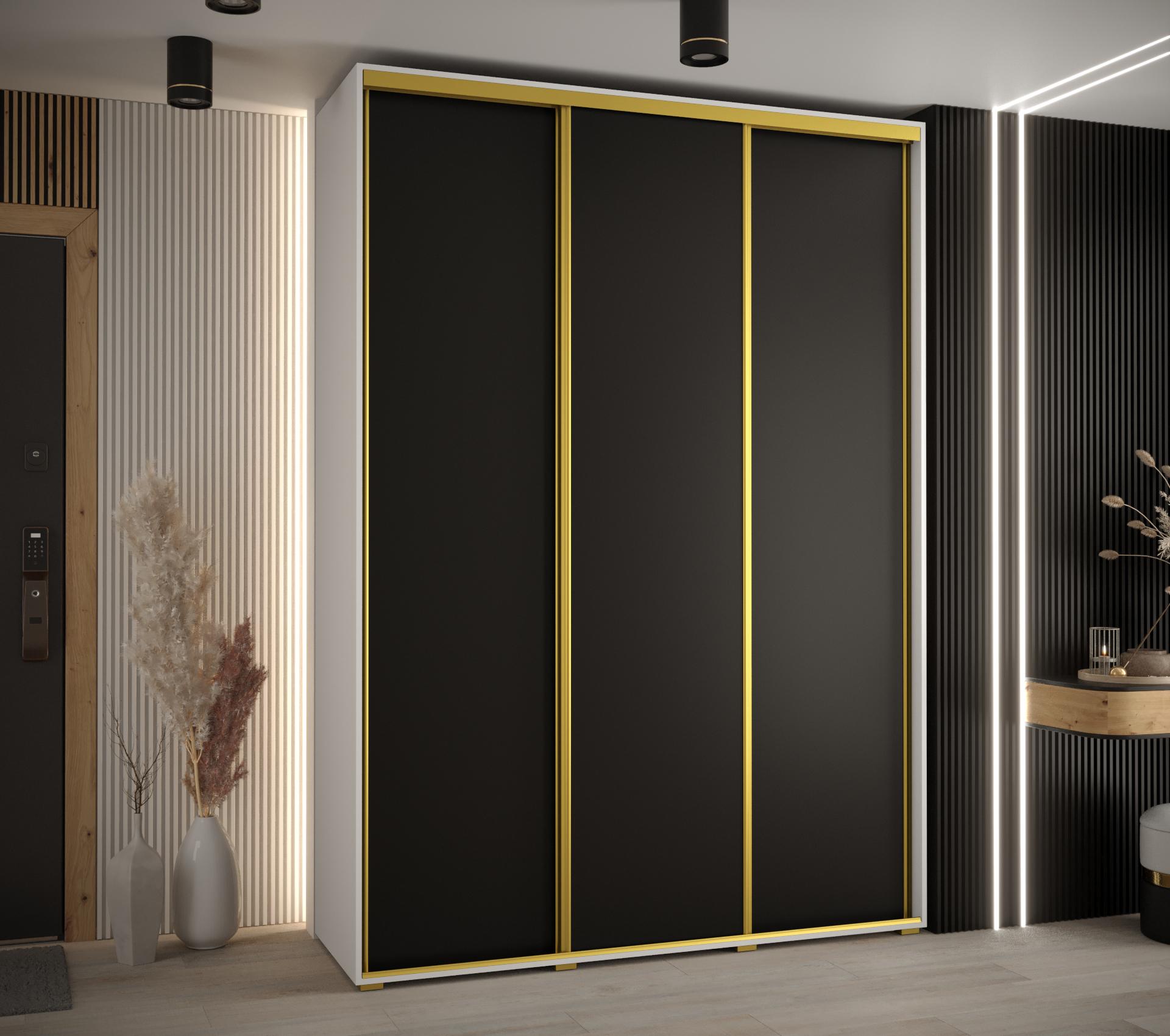ARMOIRE DAVOS 1 À PORTES COULISSANTES 235,2/180/45 3 portes (Blanc/Noir/Or)