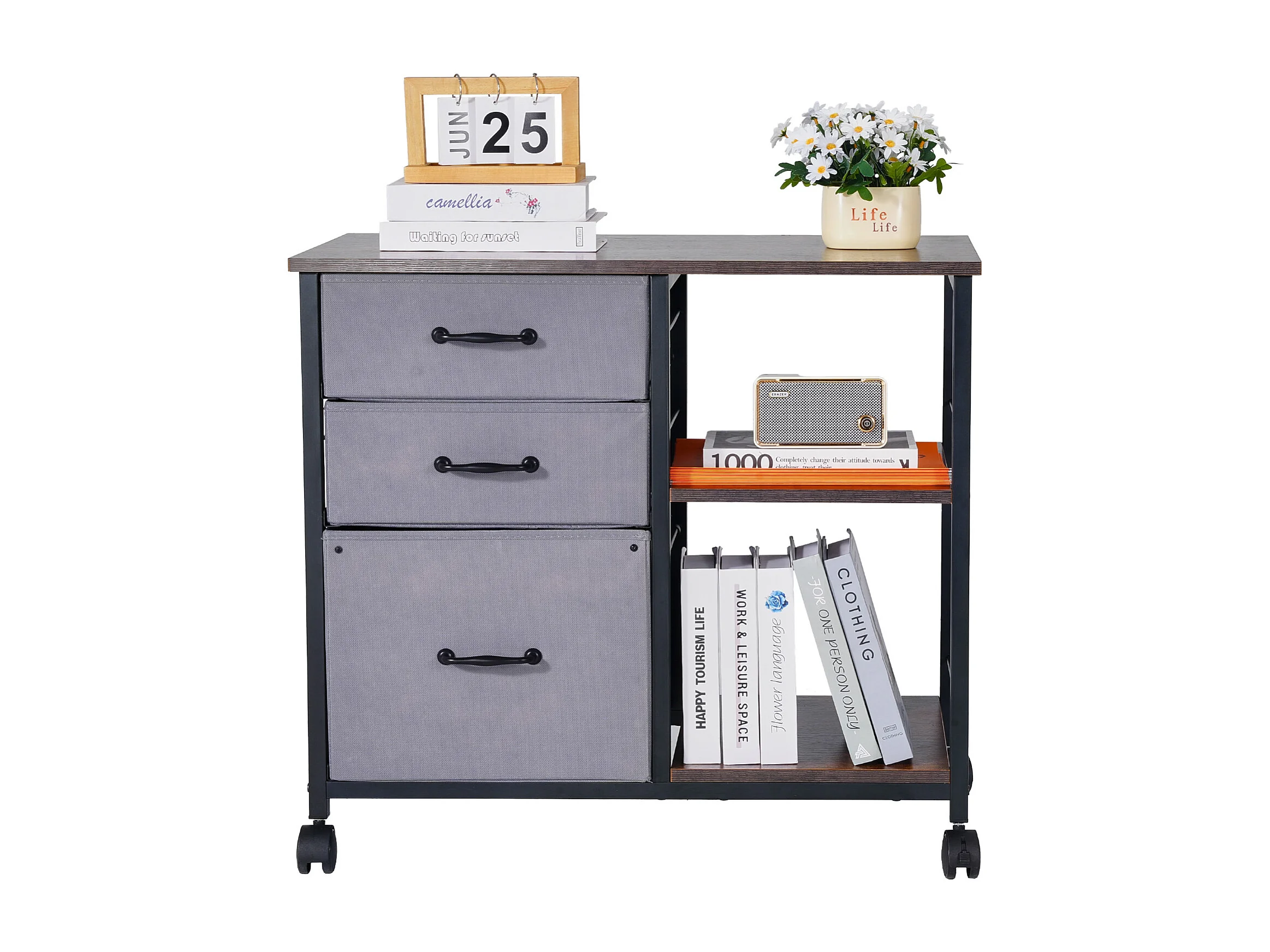 Armoire de Bureau SucceBuy, avec 3 Tiroirs en Tissu et 2 Étagères Ouvertes, Mobile, pour Rangement Classement des Documents et Dossiers, Maison, Marron