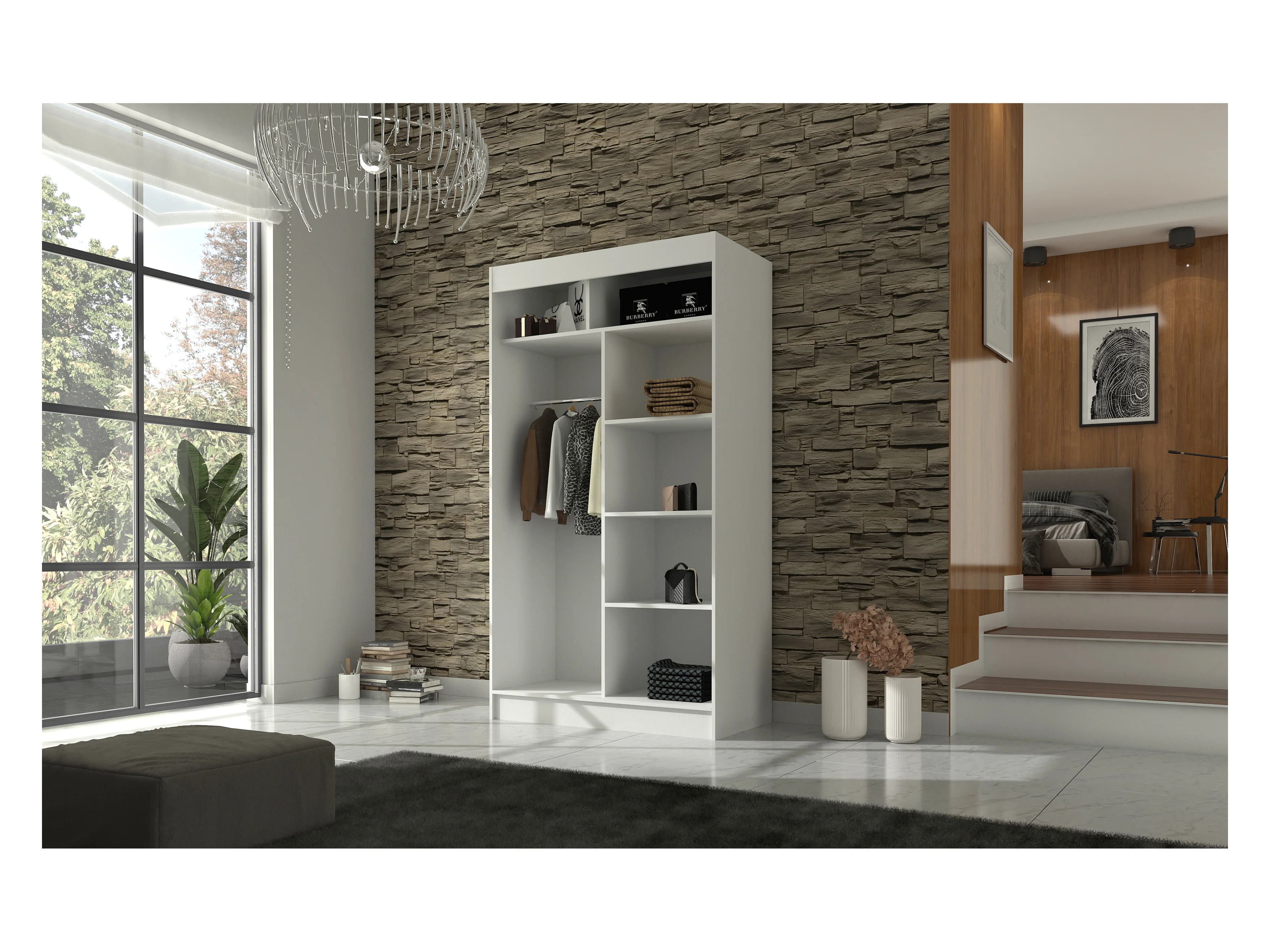 Armoire de chambre 1 porte blanche et grise laquée 1 porte miroir Voka - 3 tailles-Largeur 120 cm