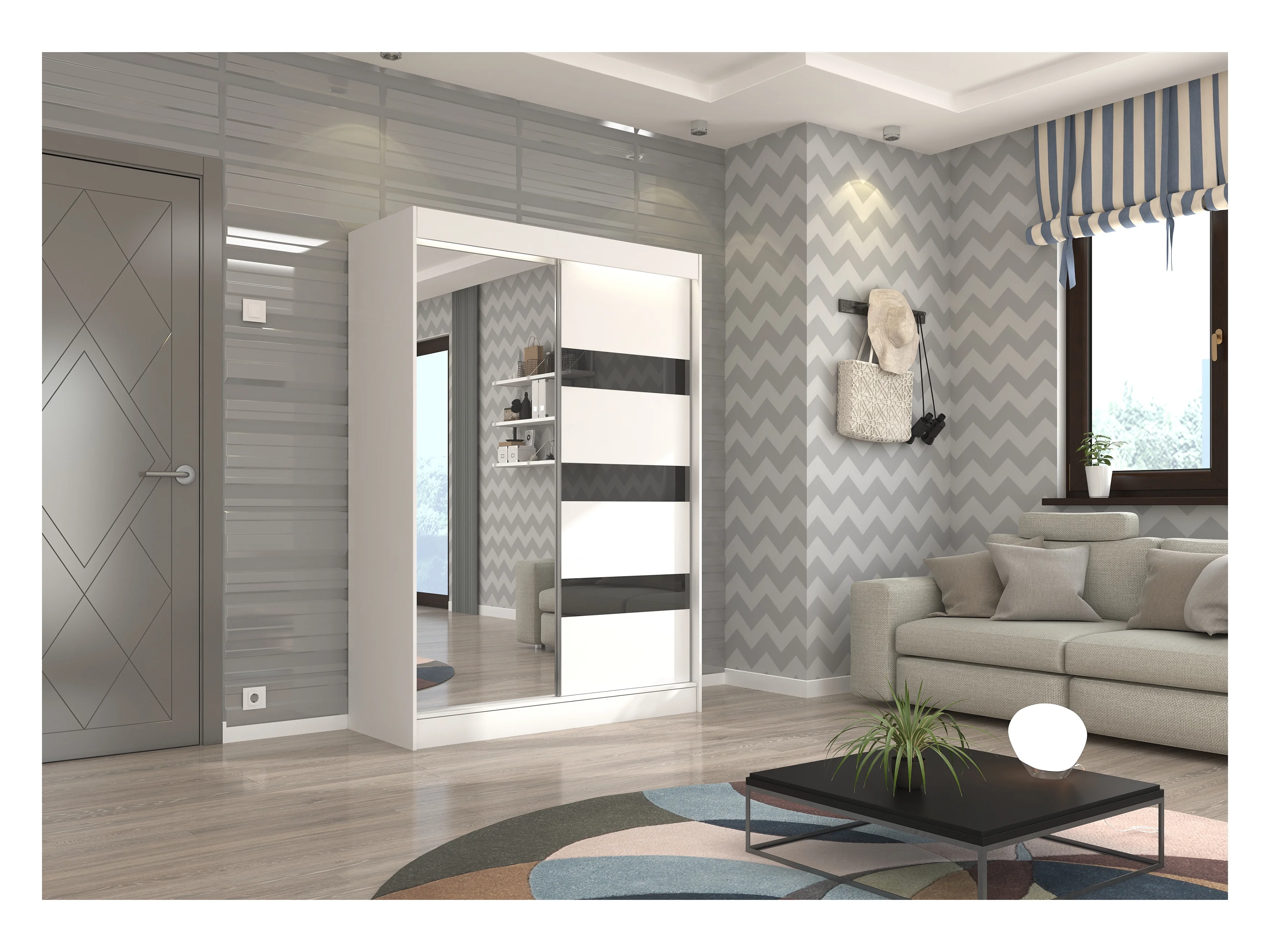 Armoire de chambre noire 1 porte blanche et grise laquée 1 porte miroir Voka - 3 tailles-Largeur 150 cm