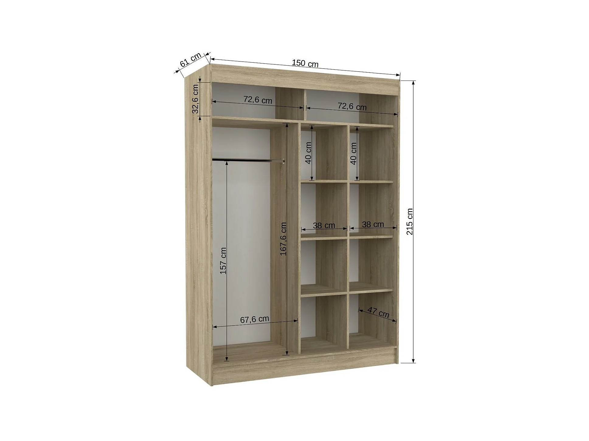 Armoire de chambre 1 porte bois clair et marron laqué 1 porte miroir Voka - 3 tailles-Largeur 150 cm