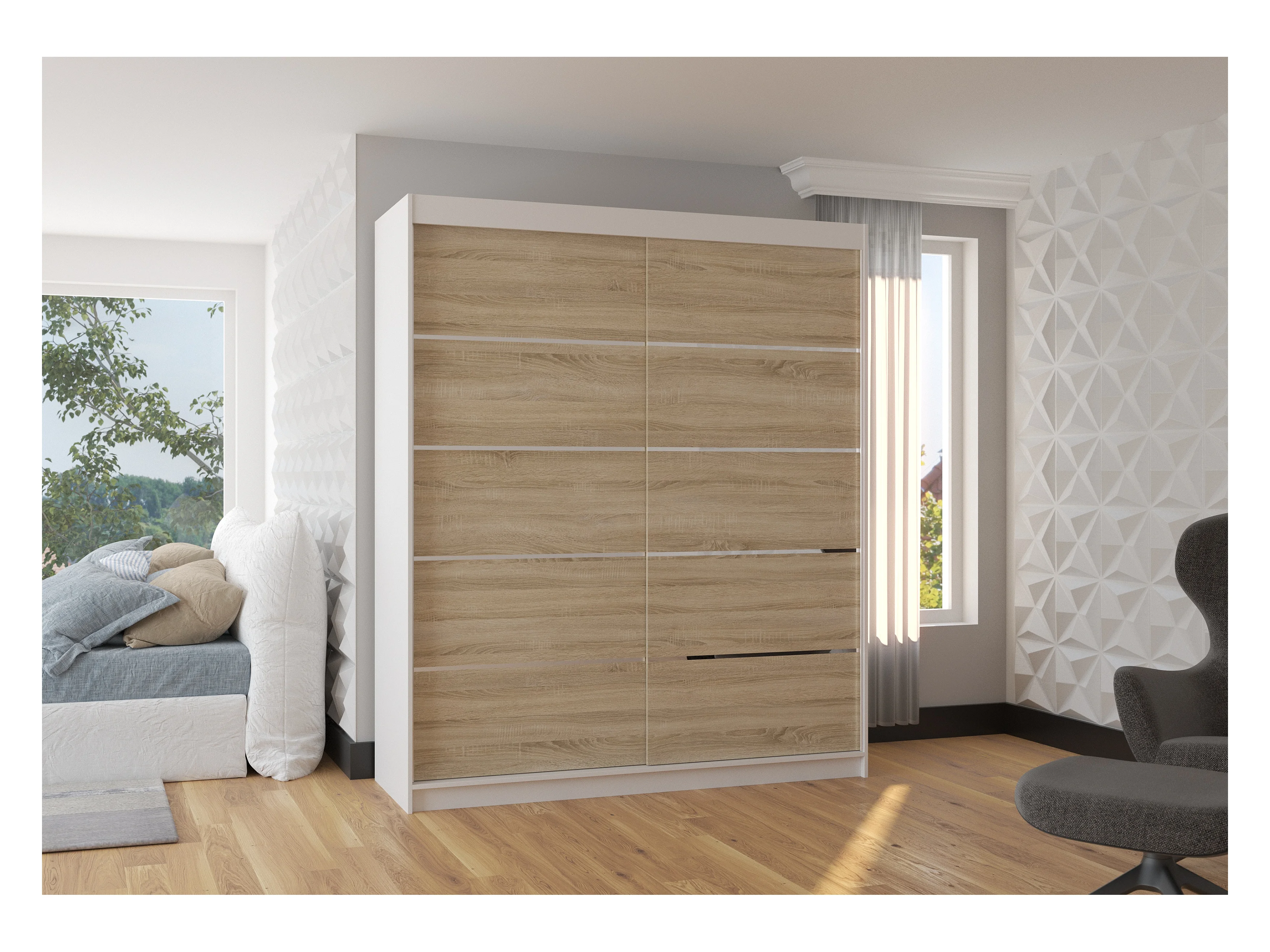 Armoire de chambre à coucher naturel 2 portes coulissantes naturel mat et blanc laqué Zanko 150cm