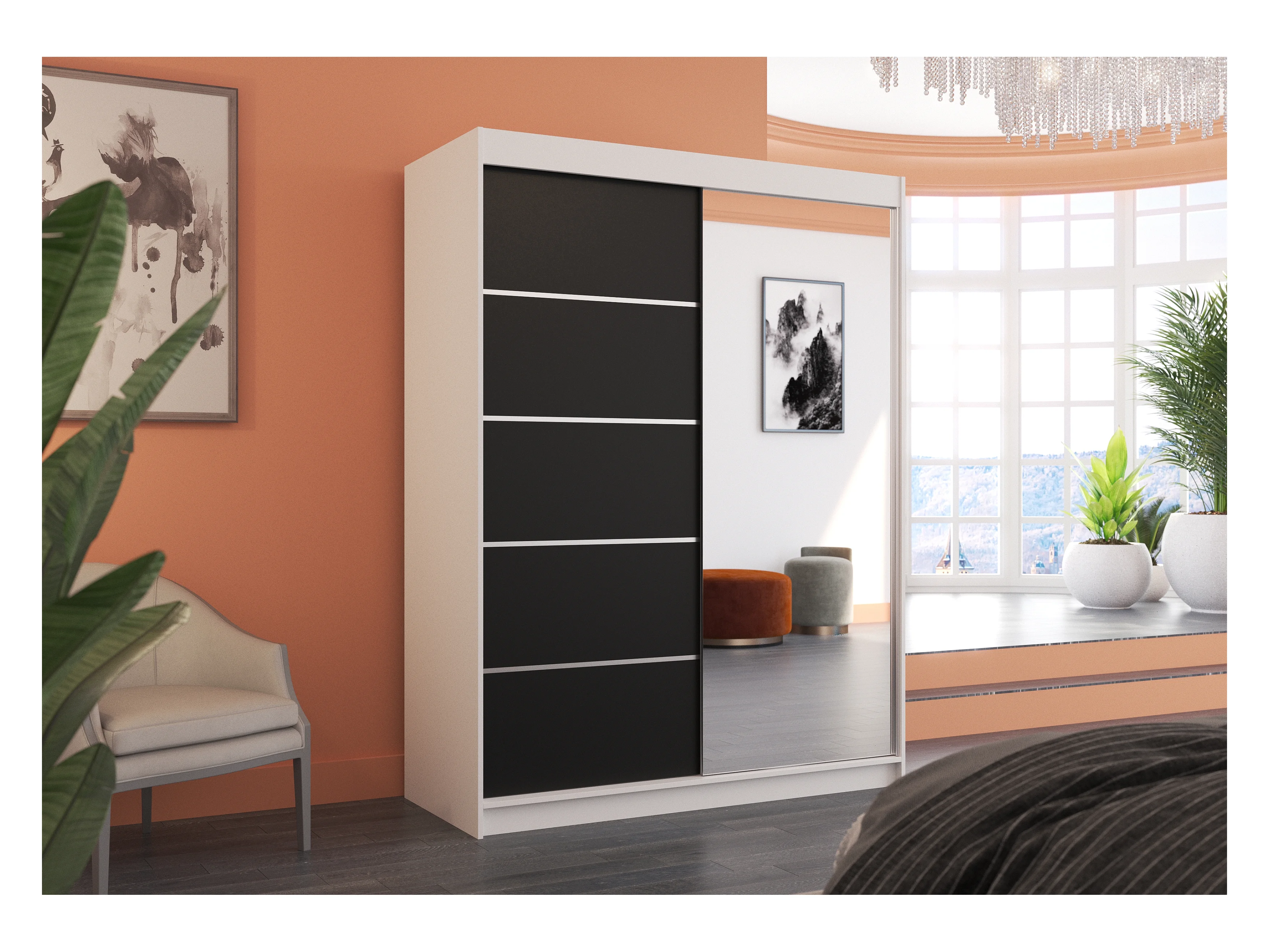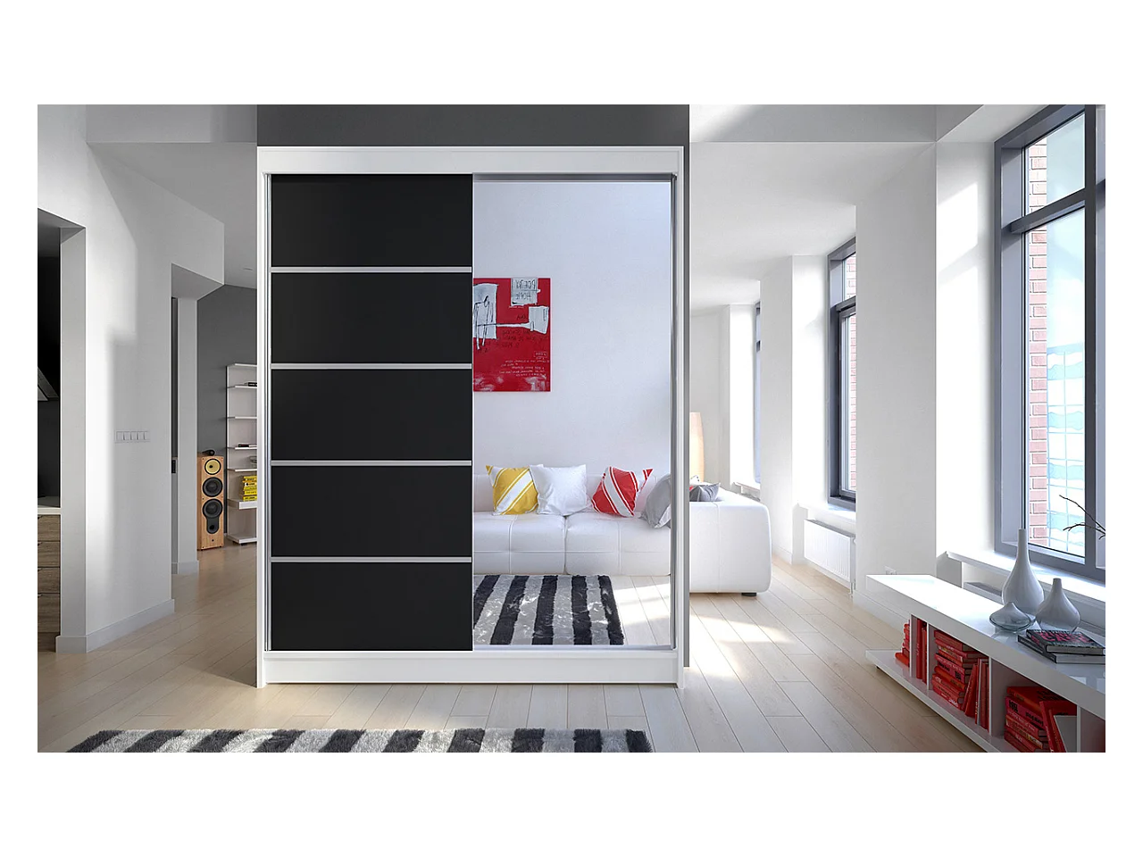 Armoire de chambre blanche 2 portes coulissantes 1 noir et 1 miroir Limka 150cm