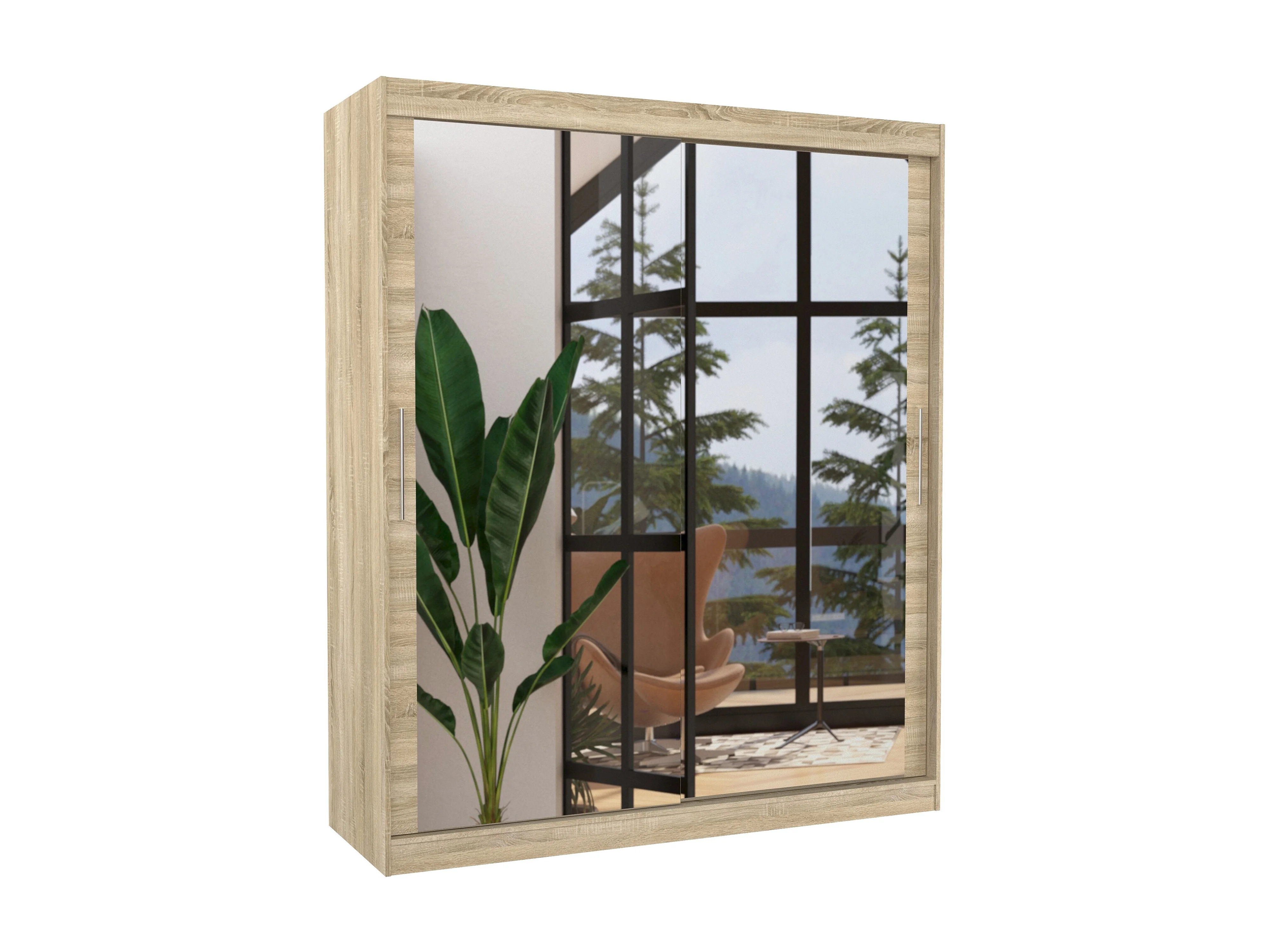 Armoire de chambre à coucher 2 portes coulissantes naturel et miroir Dally 180cm