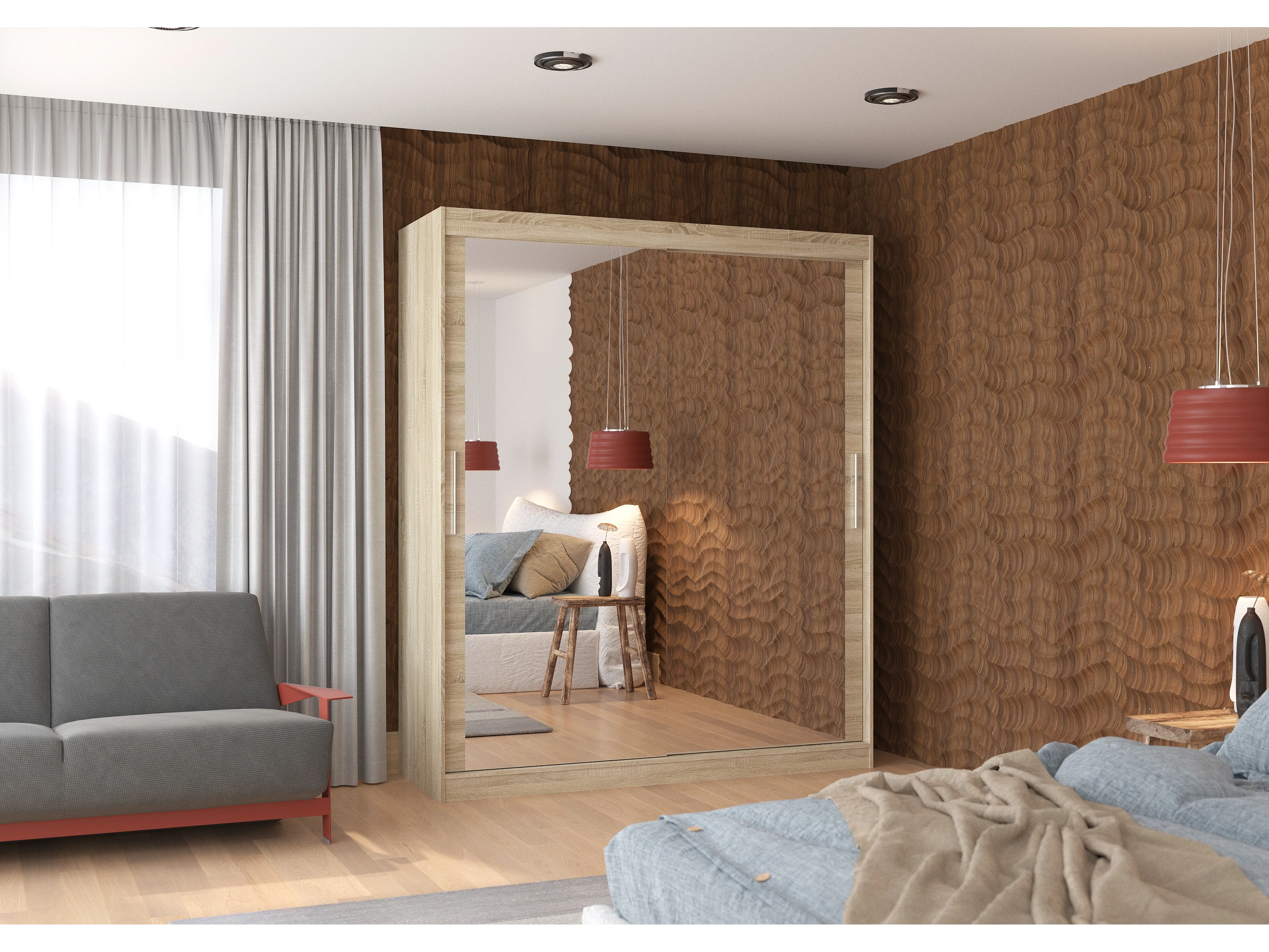 Armoire de chambre à coucher 2 portes coulissantes 1 bois clair et 1 miroir Masso 180cm