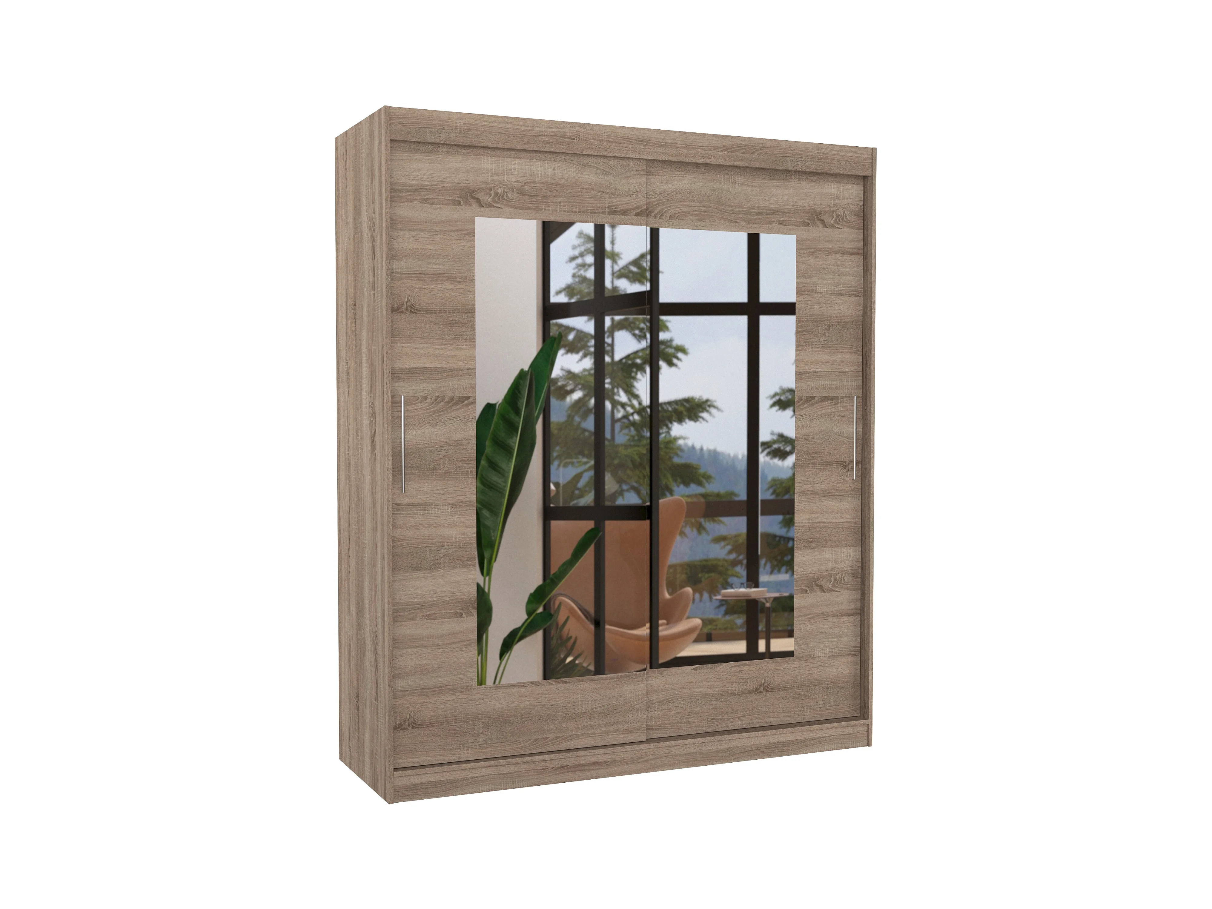 Armoire de chambre à coucher 2 portes coulissantes 1 bois clair et 1 miroir Masso 180cm