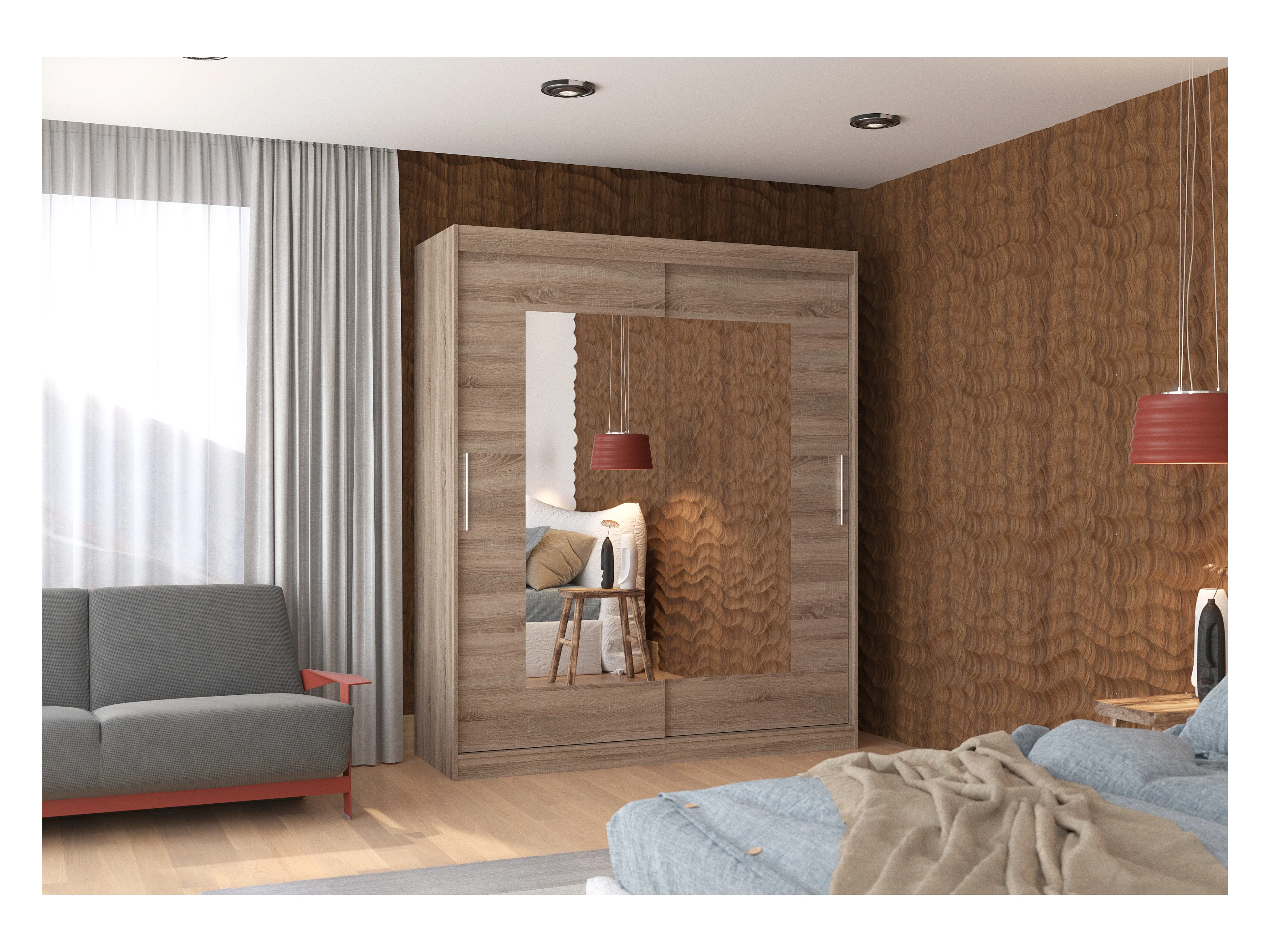 Armoire de chambre moderne bois truffe 2 portes coulissantes avec miroir Rozika 180cm