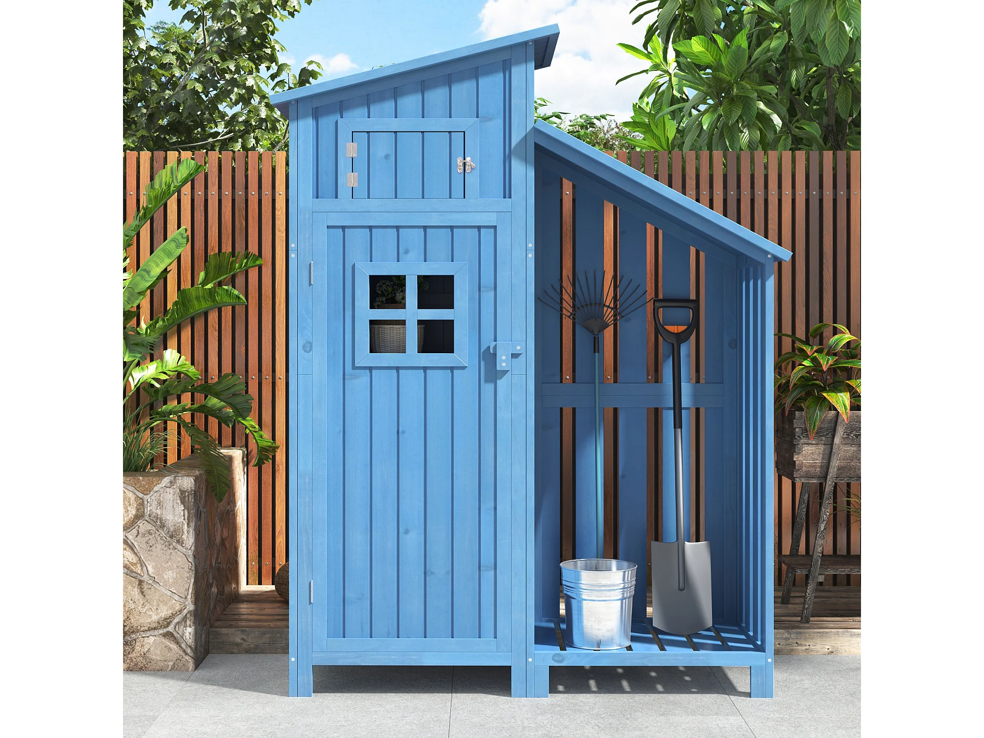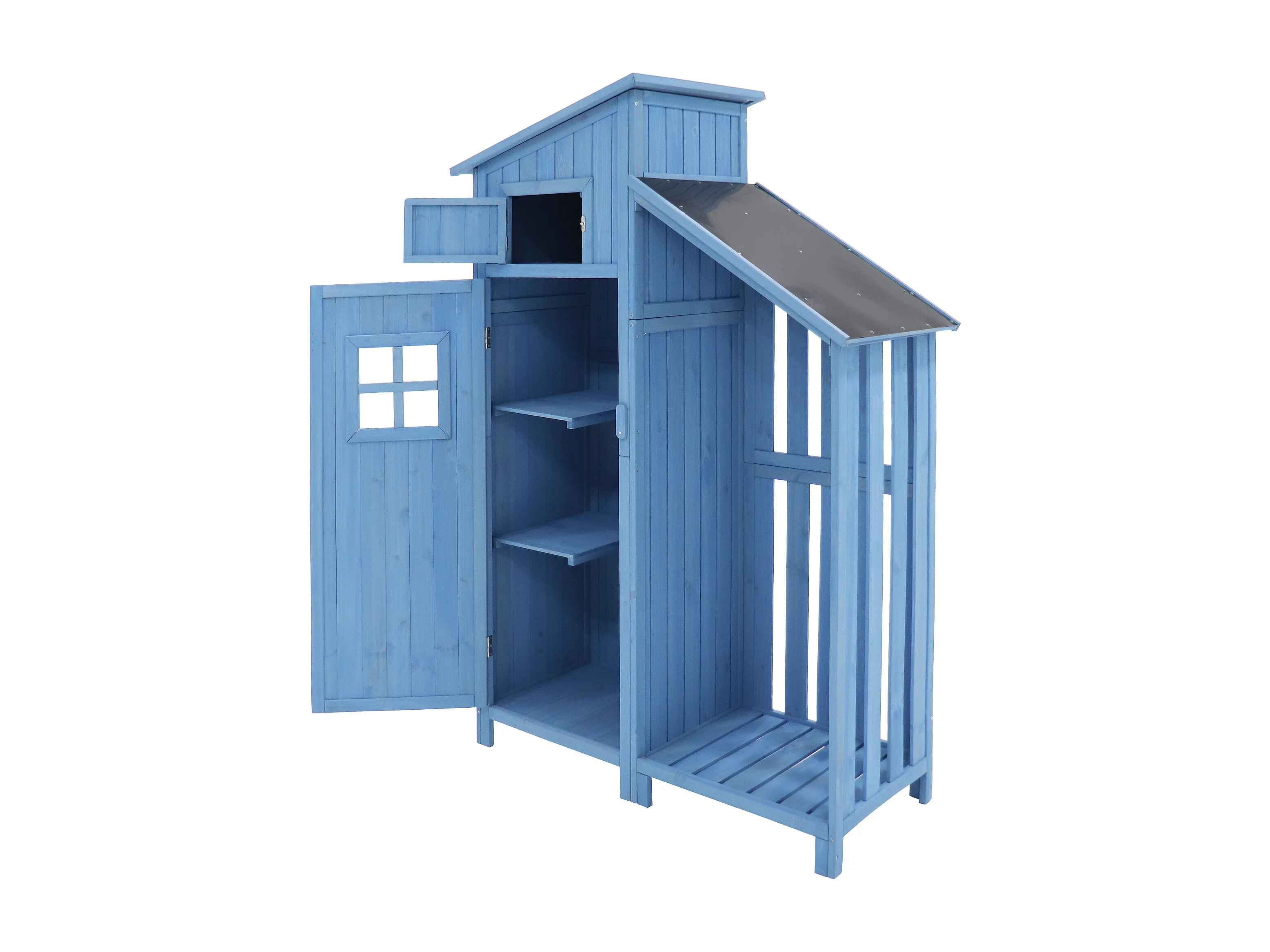 Armoire de jardin 124x46x174 cm extérieur abri jardin en bois - toit PVC Imperméable - cabane pour rangement - Bleu
