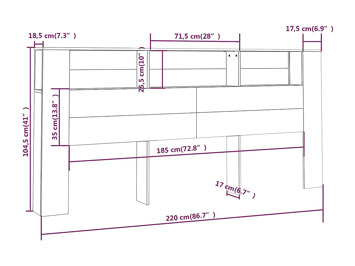 Armoire de tête de lit Sonoma gris 220x18,5x104,5 cm