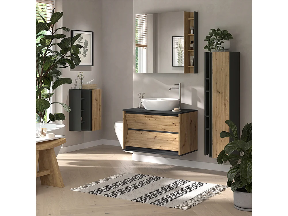 Armoire de toilette anthracite/artisan 80x18x75 edelin