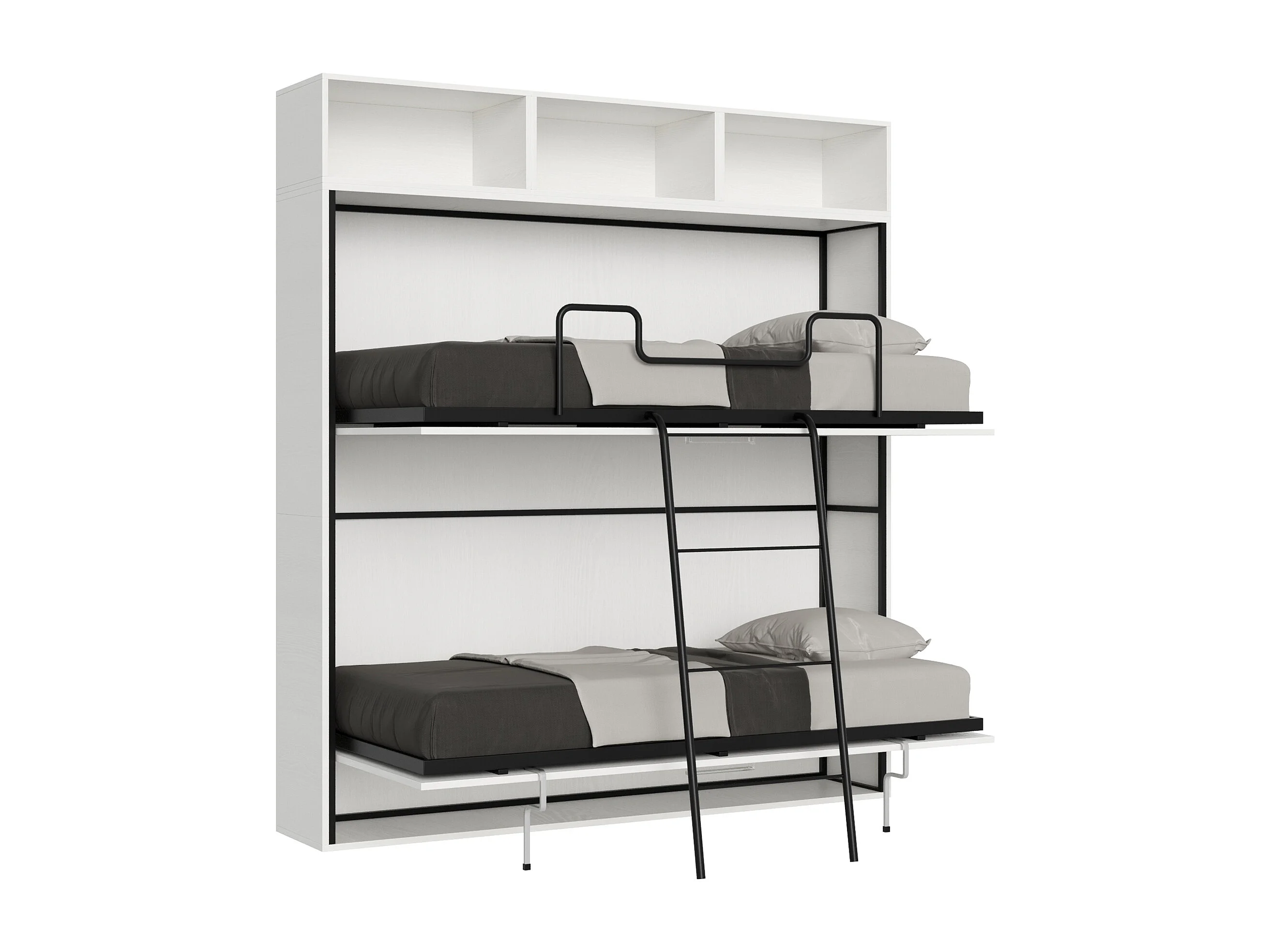 Armoire lit escamotable horizontal superposé 2 couchages 85 Kando comp.L Frêne Blanc