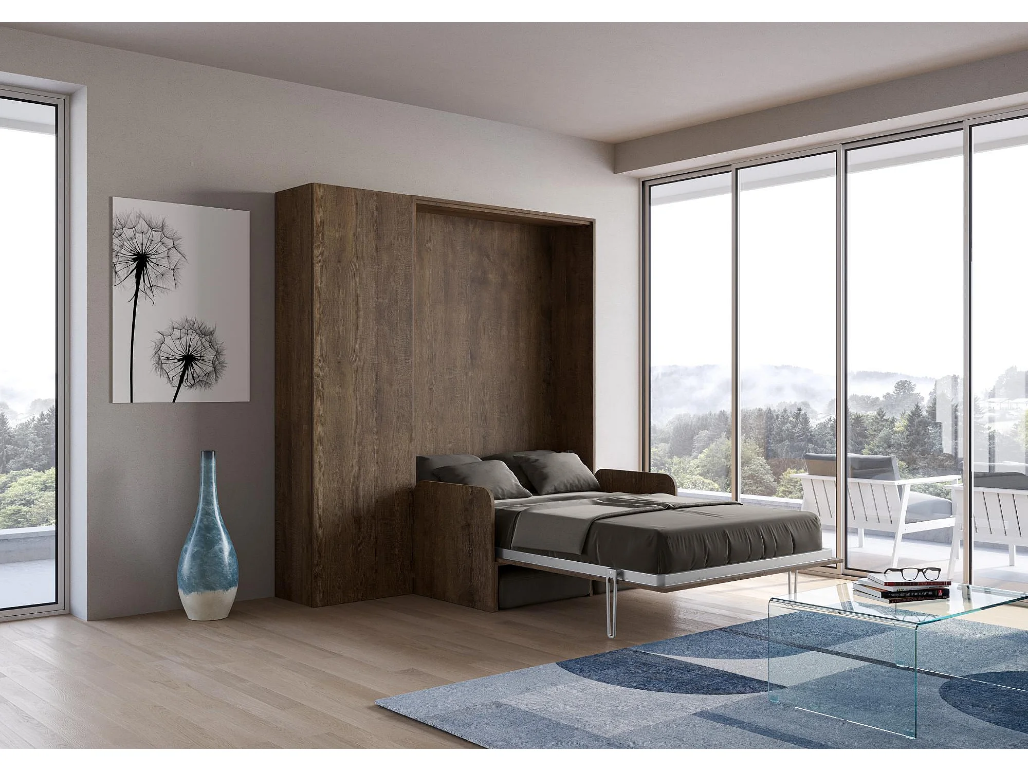 Armoire lit 1 place et demi escamotable vertical 120 Kentaro Sofa avec colonne Noyer -A20