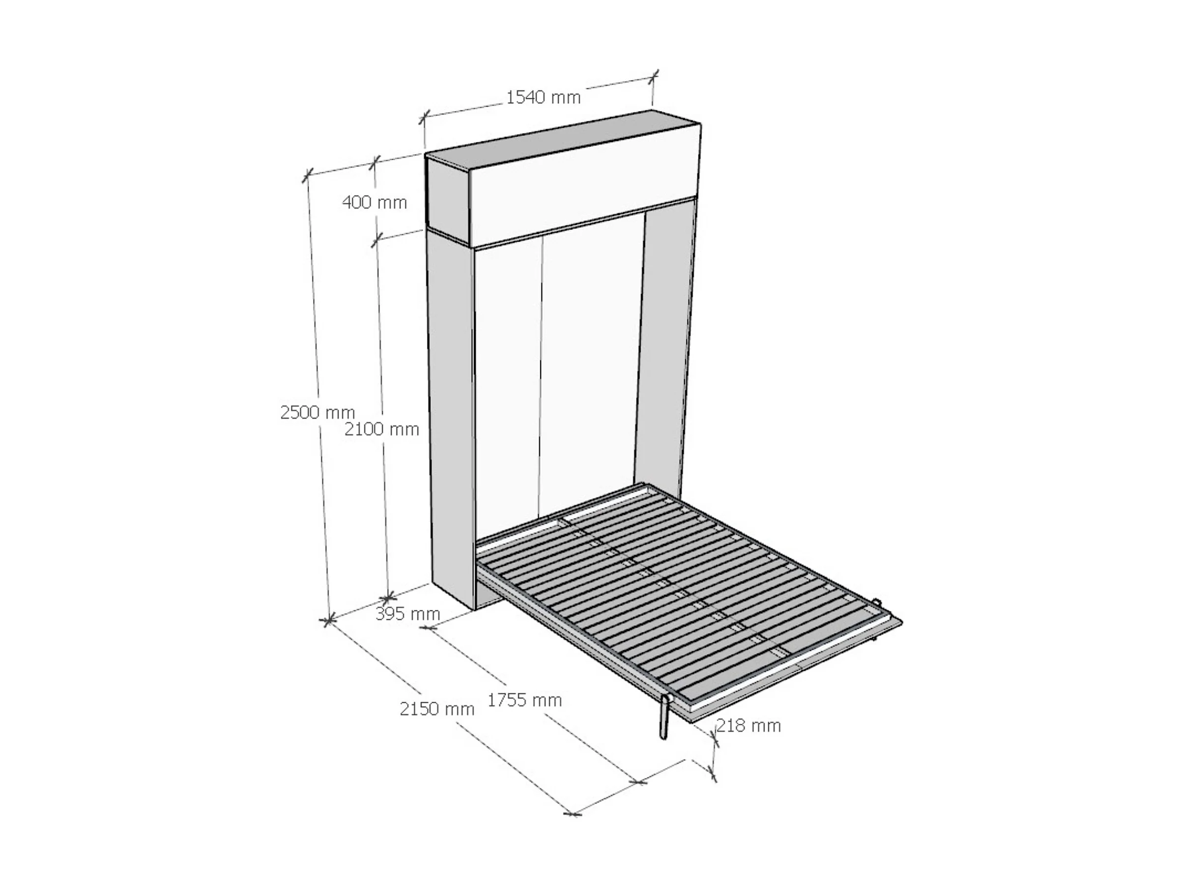 Armoire lit double escamotable vertical 140 Kentaro avec èlèment haut Frêne Blanc