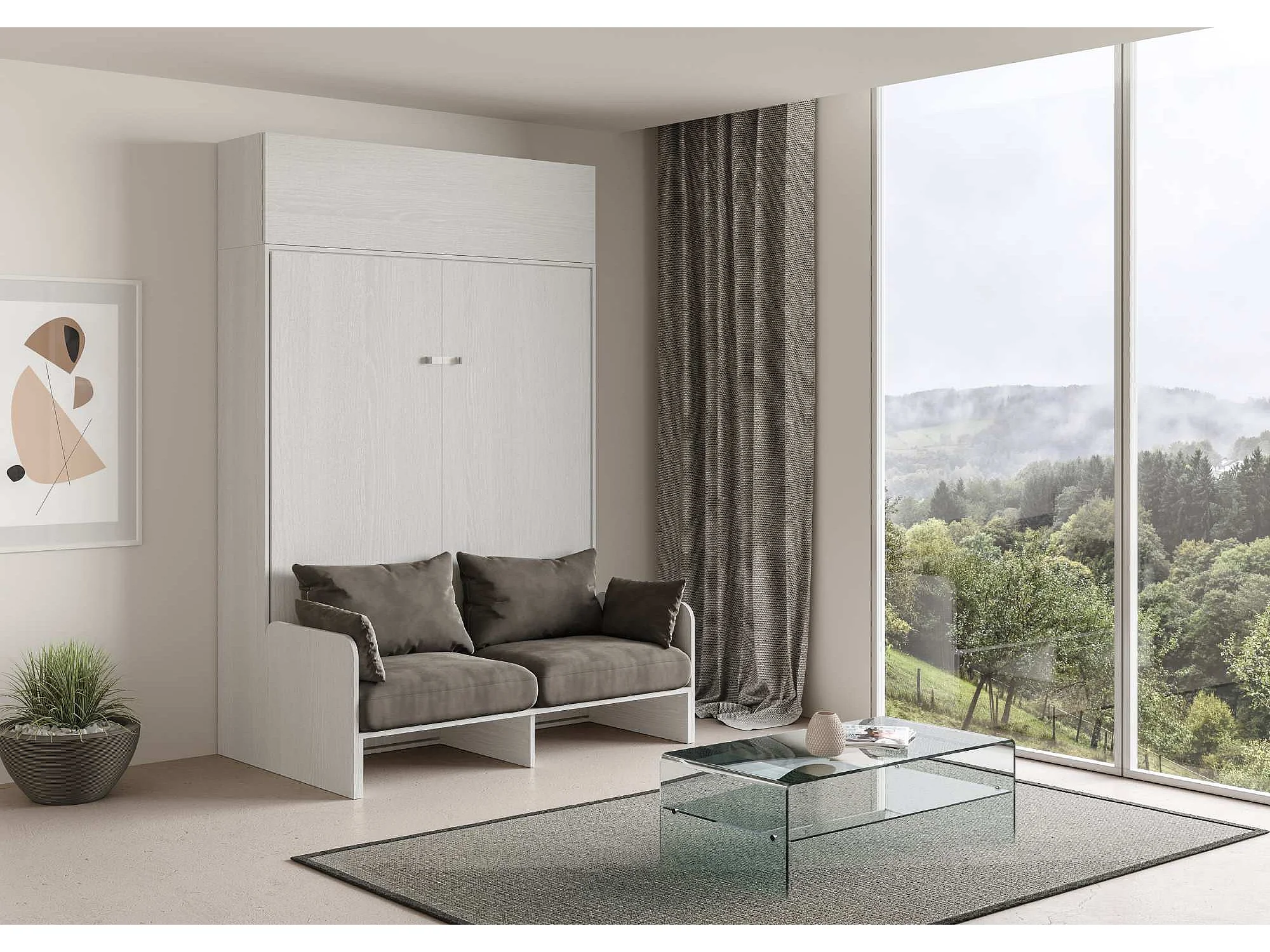 Armoire lit double escamotable vertical 140 Kentaro Sofa avec èlèment haut Frêne Blanc -A20