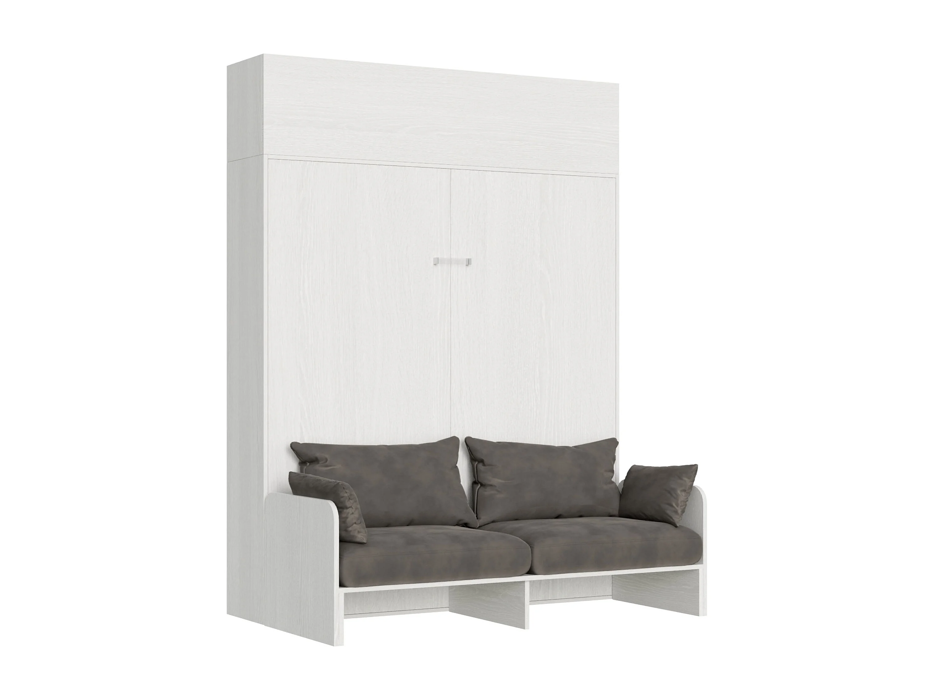 Armoire lit queen size escamotable vertical 160 Kentaro Sofa avec èlèment haut Frêne Blanc -A20