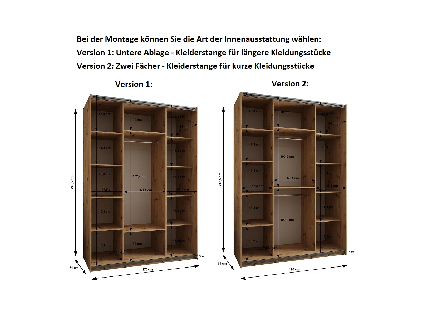 Armoire Lux 2 245,5/170/64 (Blanc/Noir/Argent)