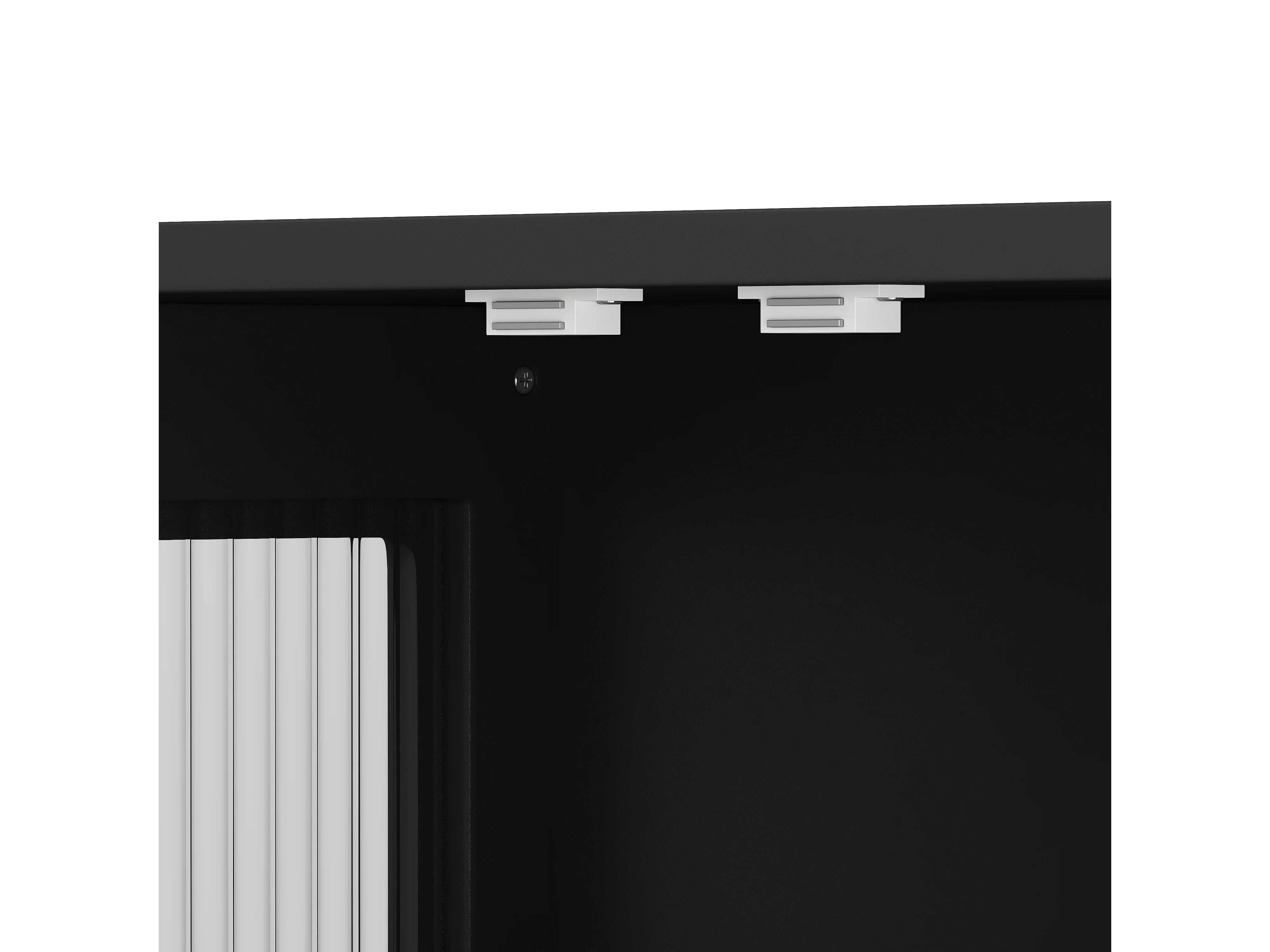 Armoire murale de salle de bain, 3 portes avec espace de rangement ouvert et caché, 88x26x69cm, Noir