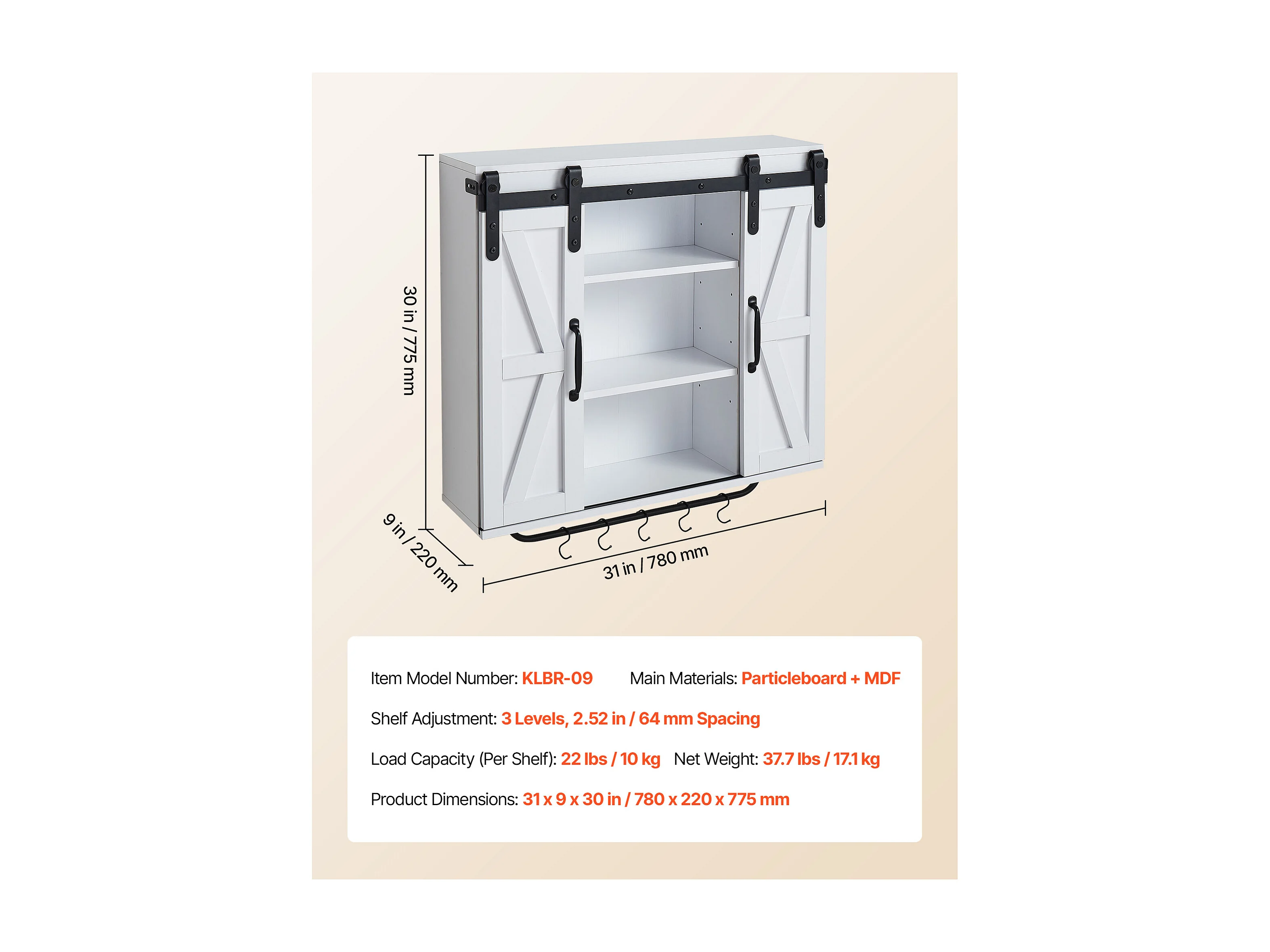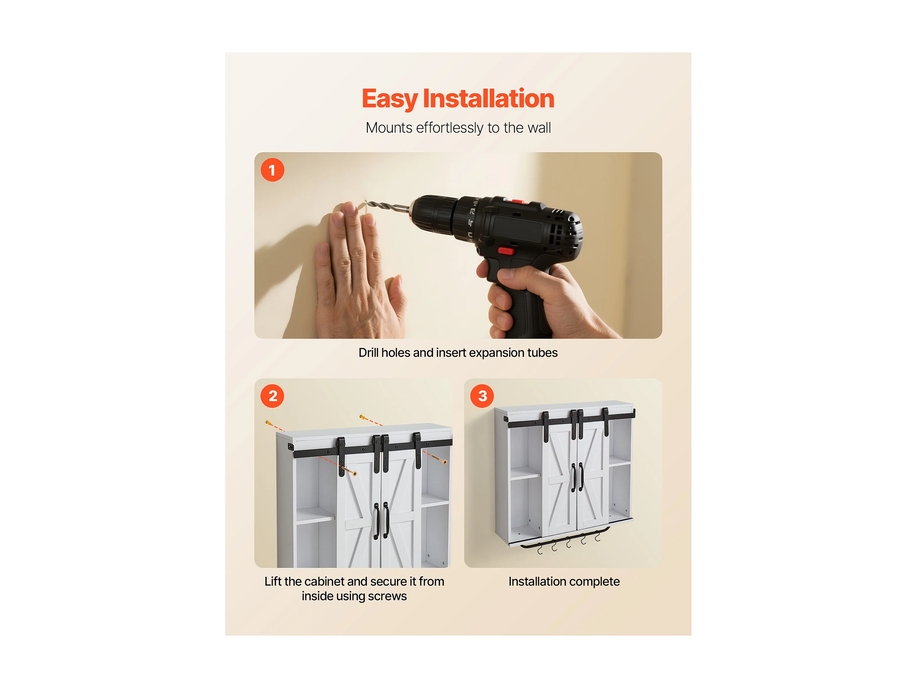 Armoire Murale de Buanderie SucceBuy, Placard Rangement 137,2 cm avec 3 Portes, en Panneaux de Particules et MDF