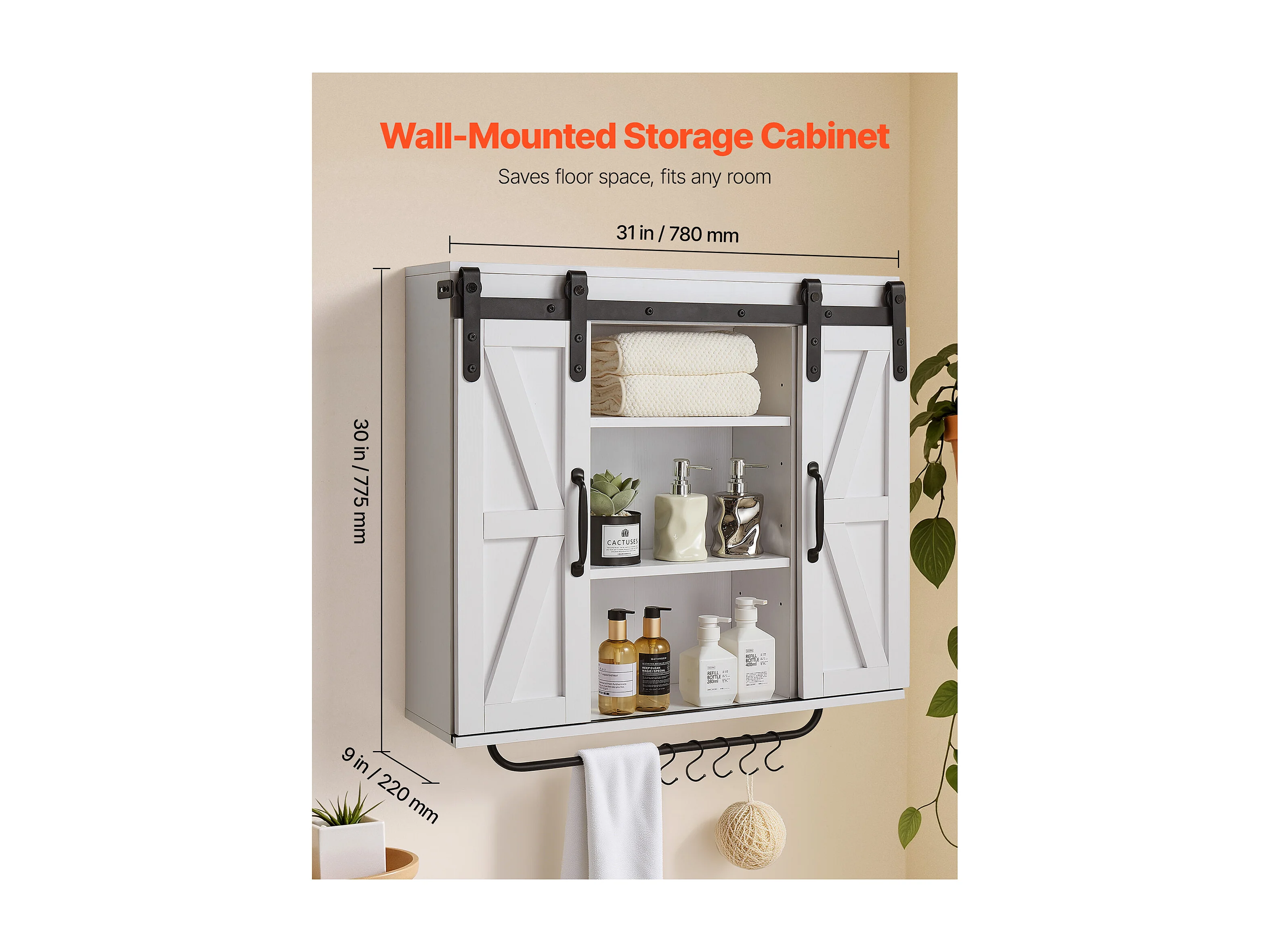 Armoire Murale de Salle de Bain SucceBuy, 2 Portes et Étagère Réglable, Armoire à Pharmacie au-dessus des Toilettes, Organisateur Suspendu pour Buanderie