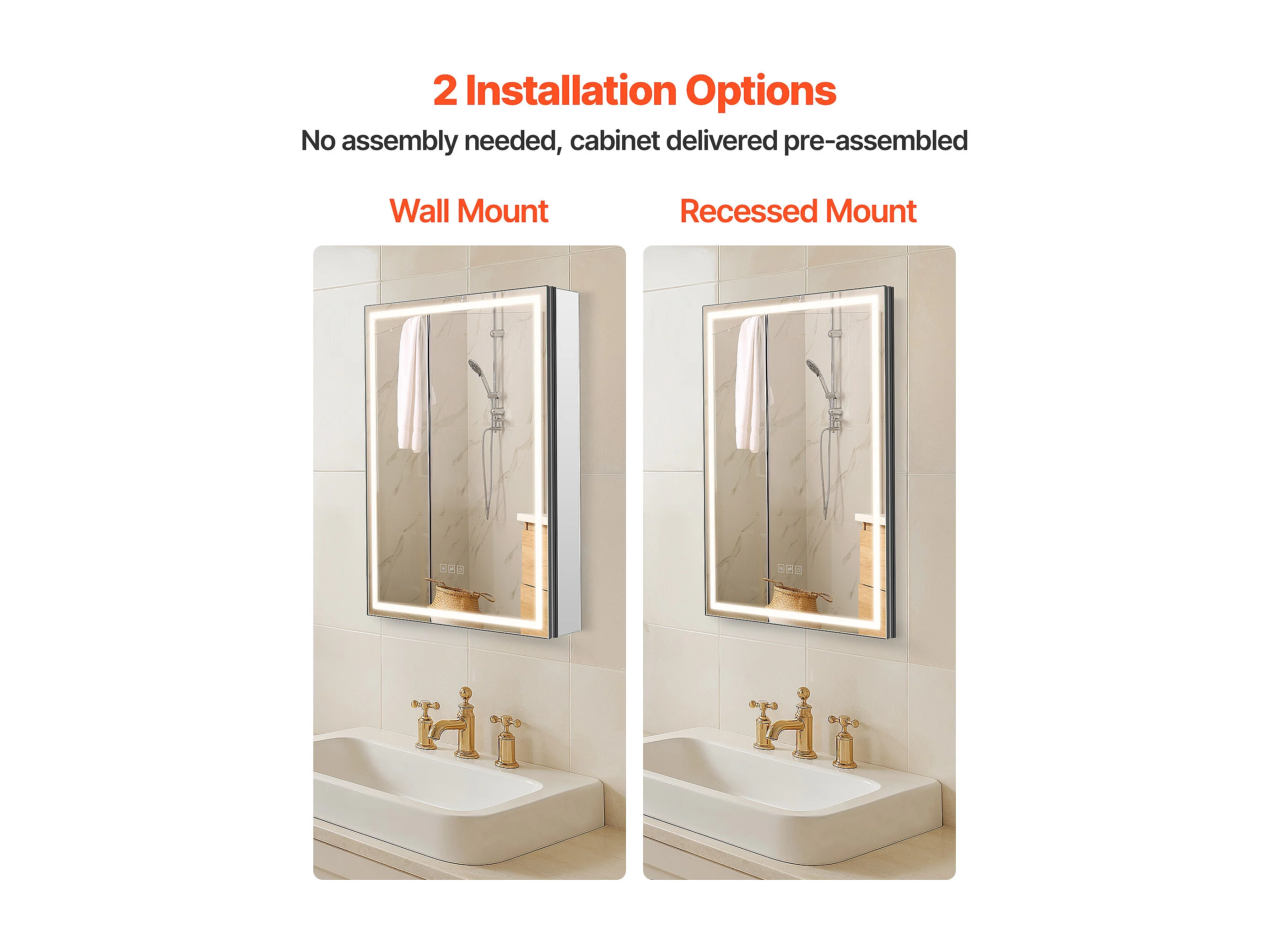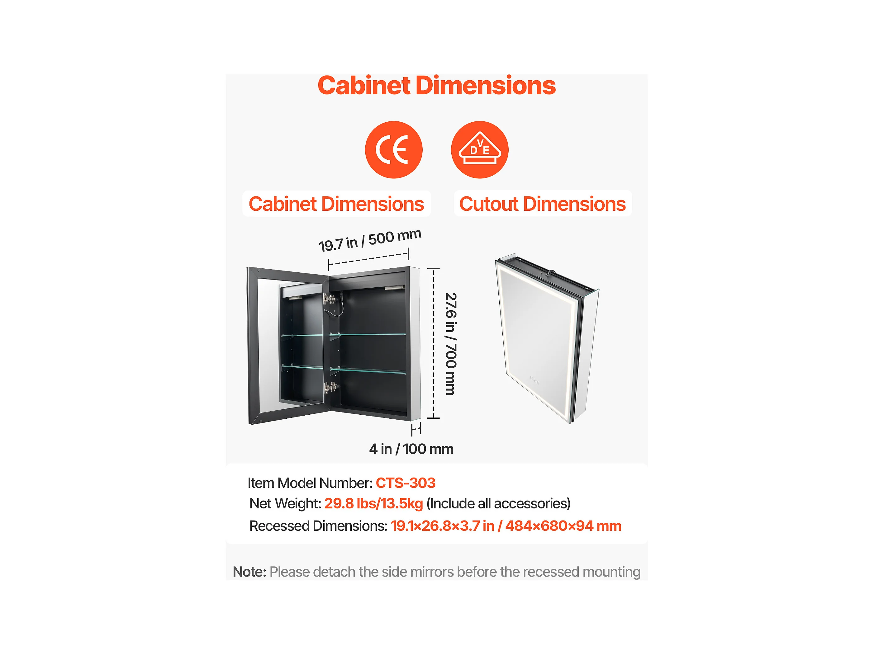 Armoire Murale Salle de Bain SucceBuy Armoire de Toilette avec Miroir et LED 3 Couleurs à Intensité Variable, Fonction de Désembuage à Mémoire, 50x70 cm