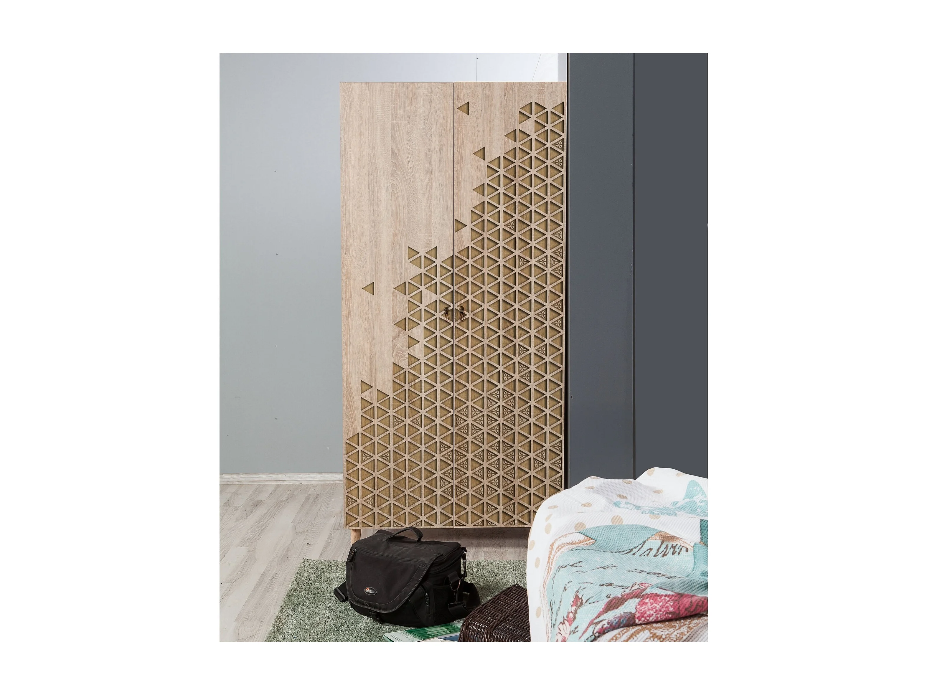 Armoire penderie 2 portes Infigo 90cm Bois Naturel Motif Triangles Beige