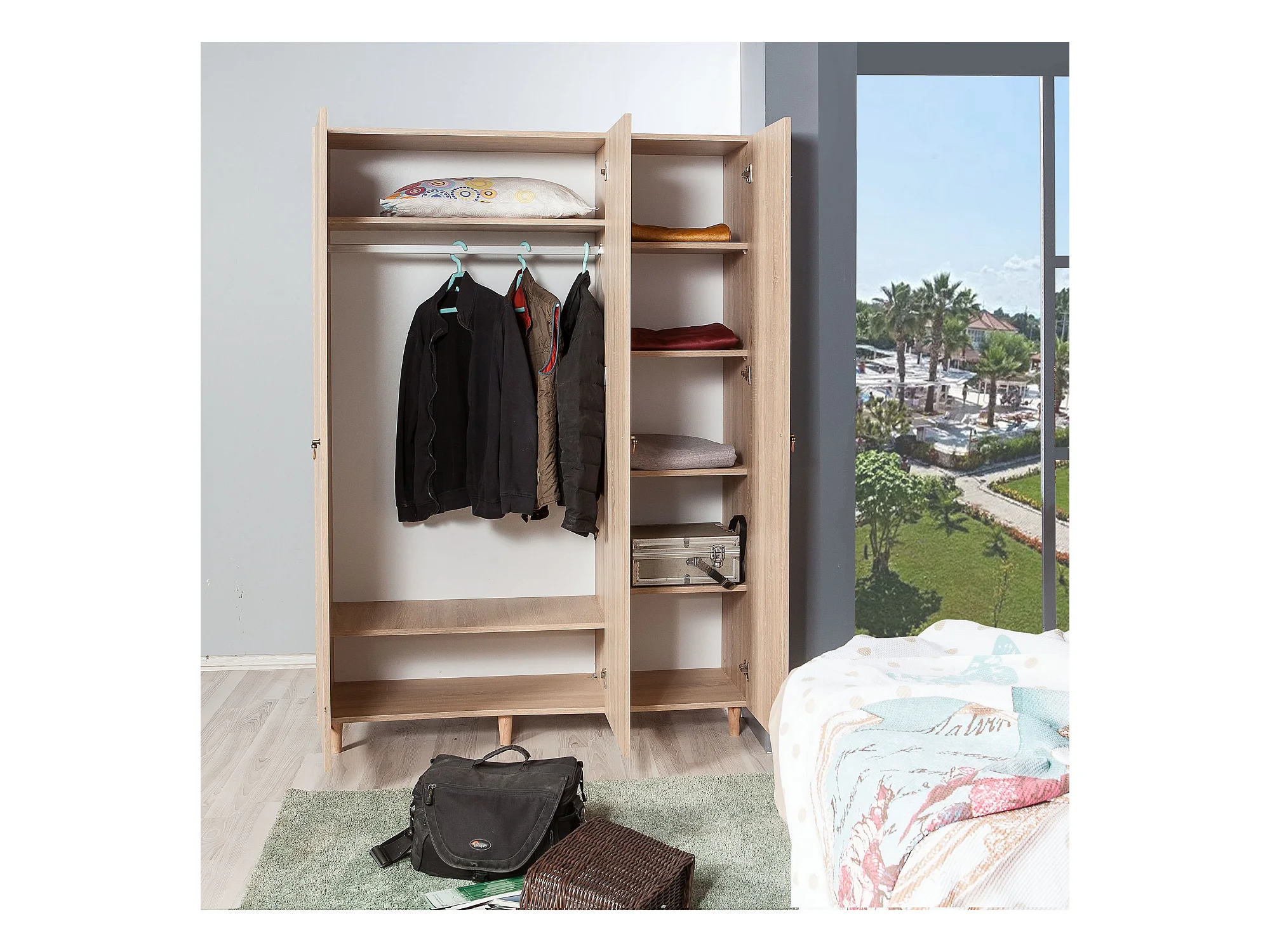 Armoire 3 portes Kanawa L135xH210cm chêne clair et Noir