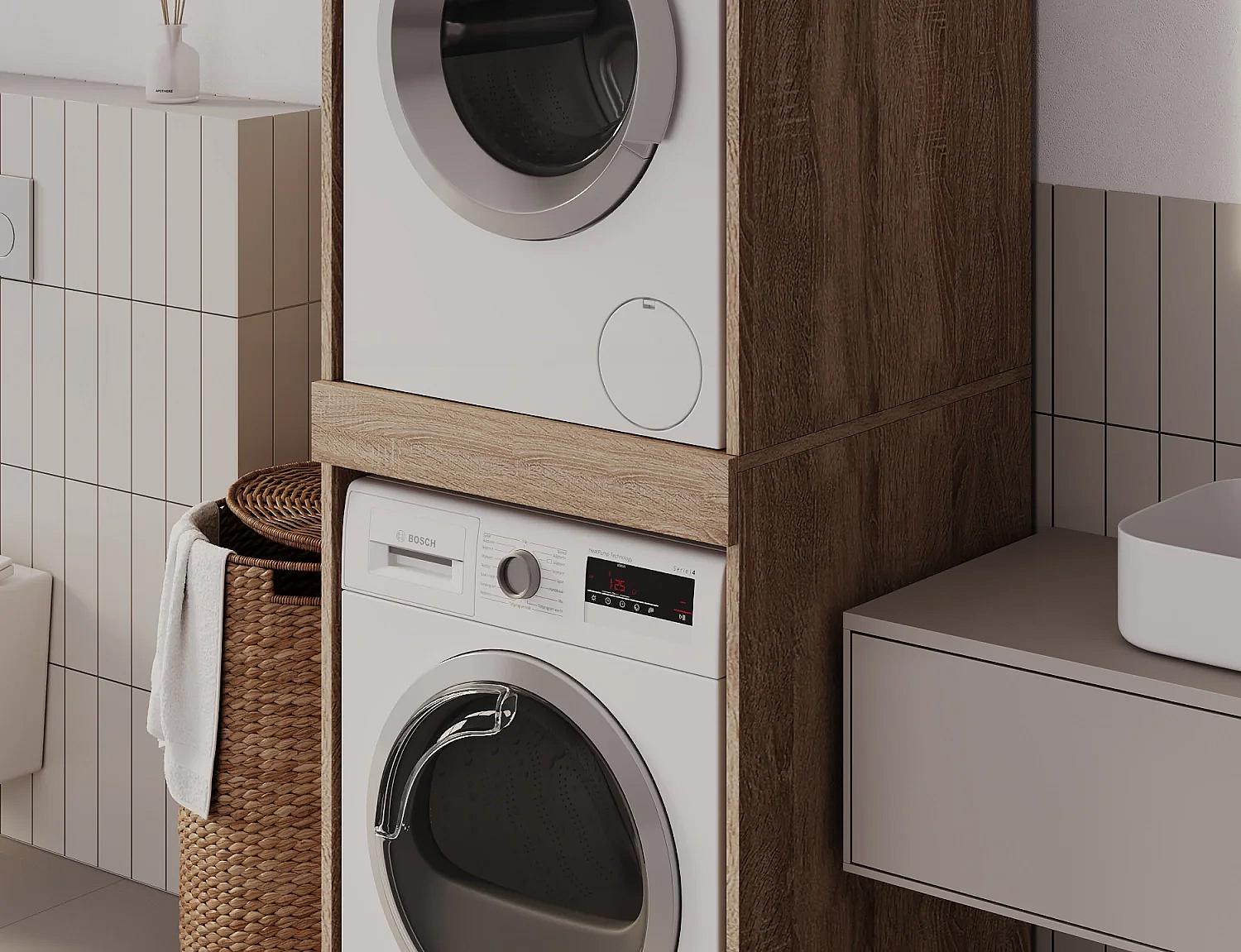 Armoire de machine à laver ou sèche-linge - 130 cm de large - Avec armoire - Armoire pour machine à laver ou sèche-linge