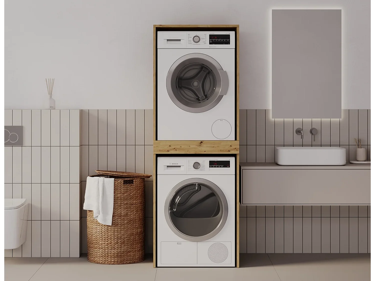 Armoire pour machine à laver et sèche-linge avec tablette coulissante • Meuble de rangement pour lave-linge et sèche-linge • Armoire de surplomb 187 x 65 x 66 cm