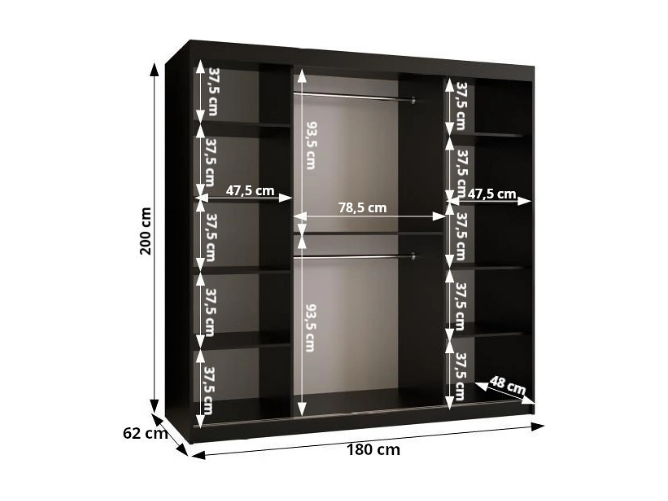 Armoire Royal À Portes Coulissantes 200/180/62 2 portes (Noir)