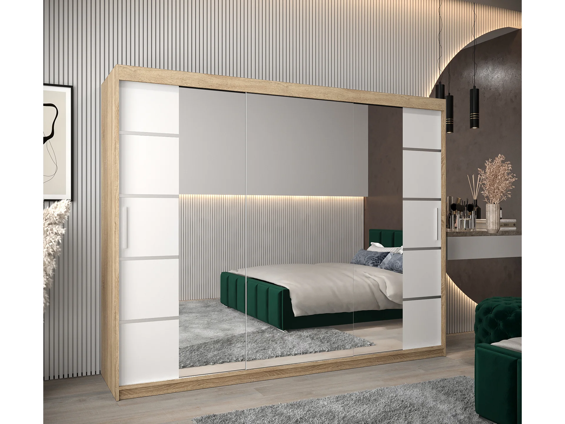 ARMOIRE VERONA 4 À PORTES COULISSANTES 200/250/62 3 Portes (Sonoma/Blanc)