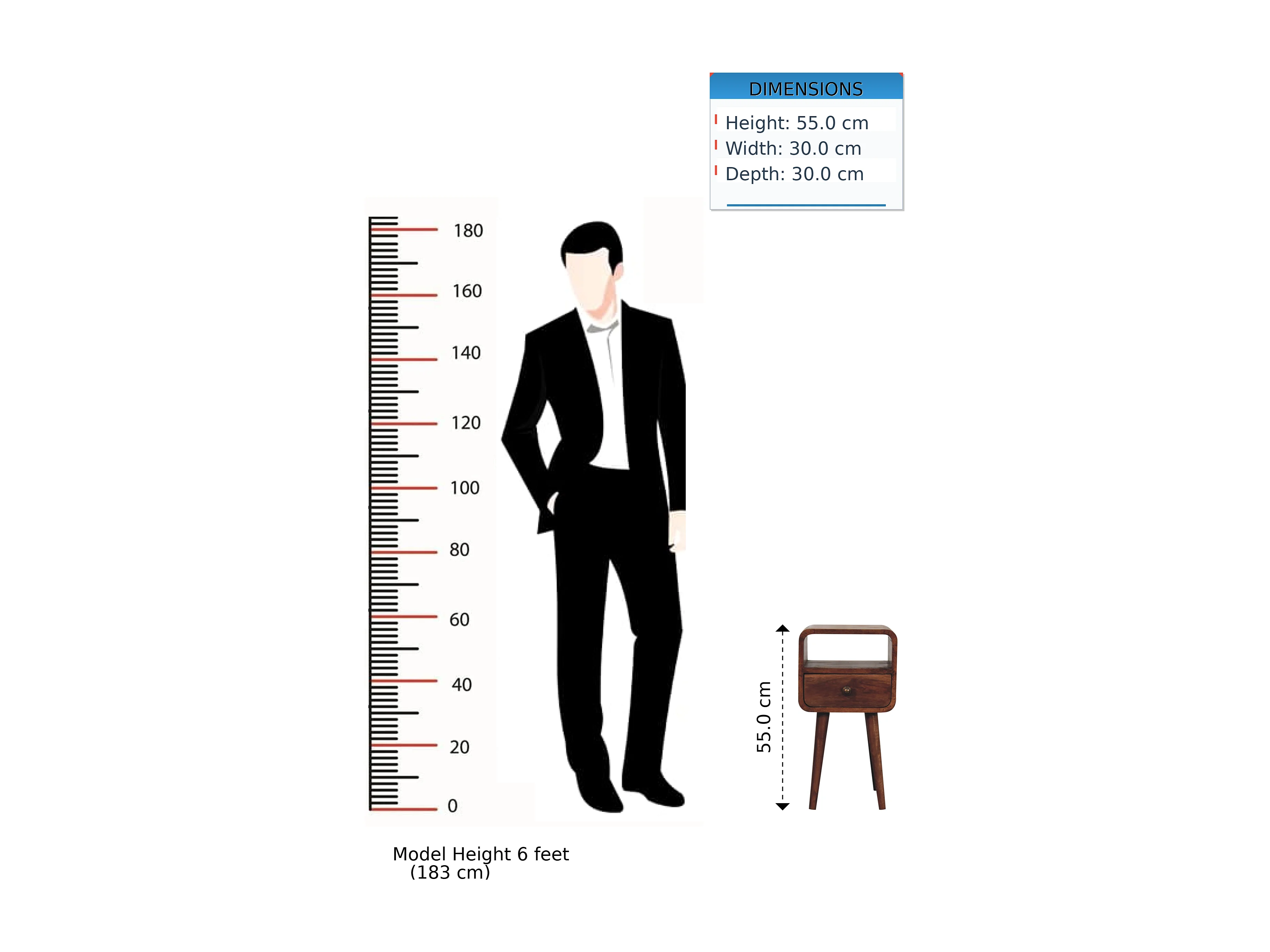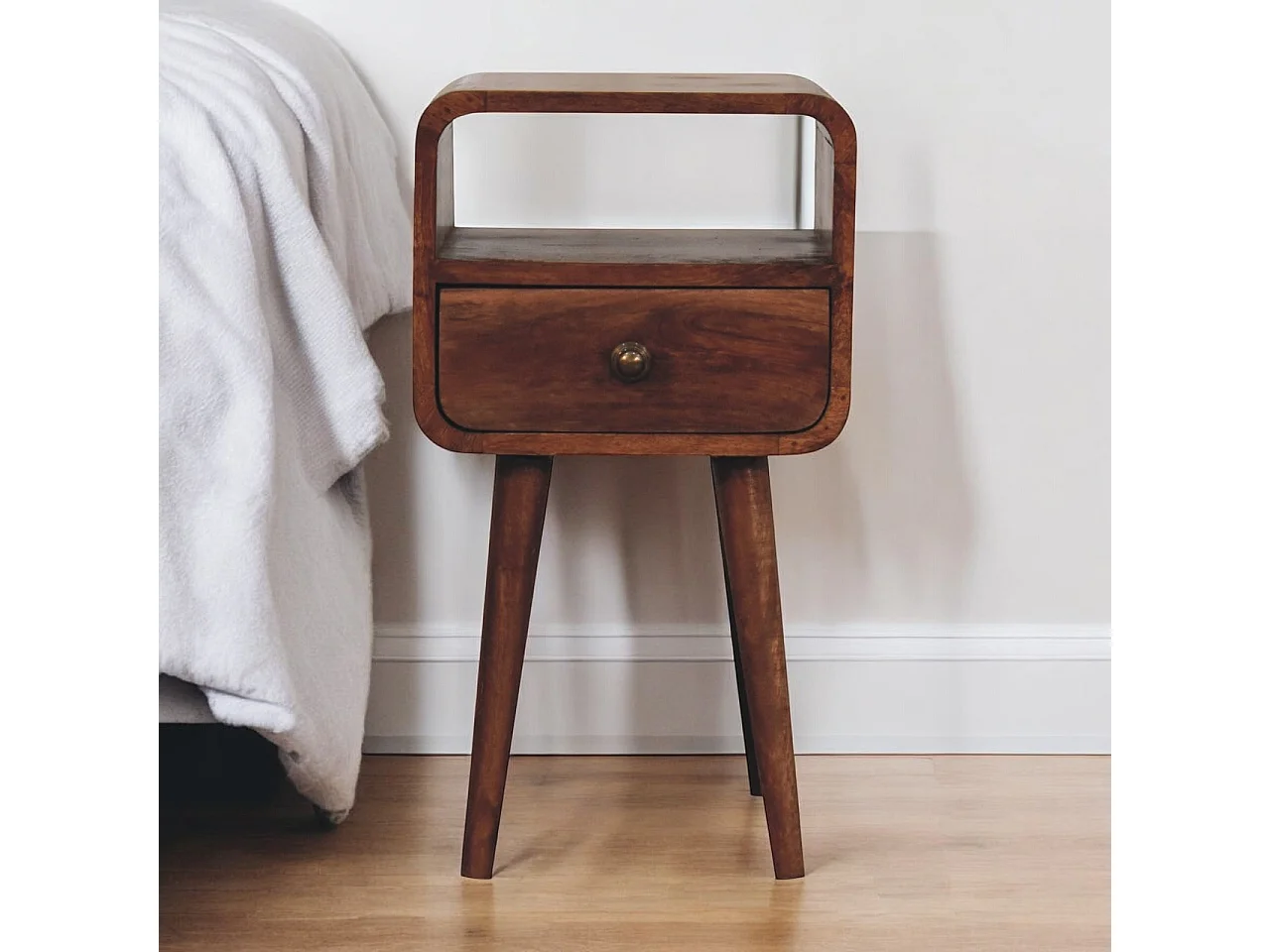 Artisan Furniture Table de chevet incurvée en bois massif couleur miel caramel, 1 tiroir et compartiment ouvert, brun foncé