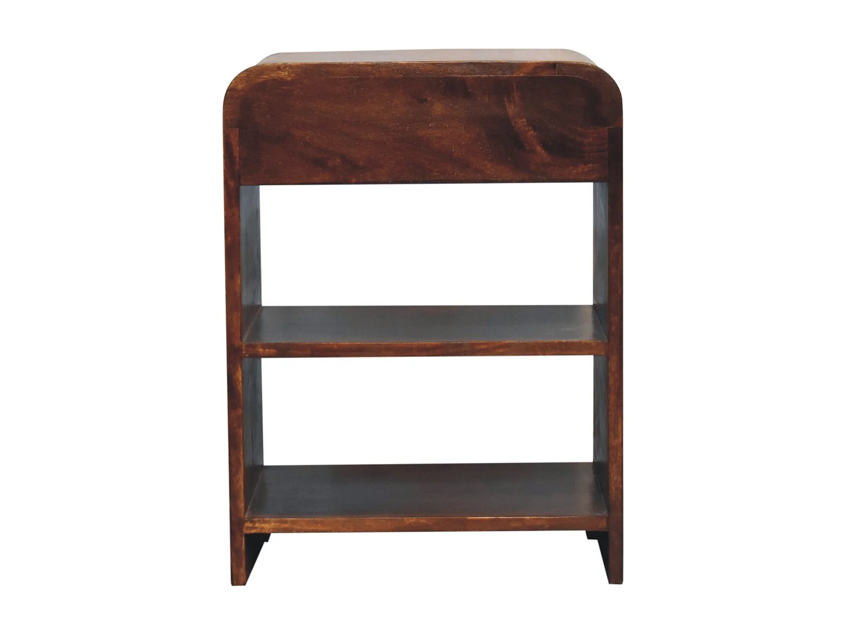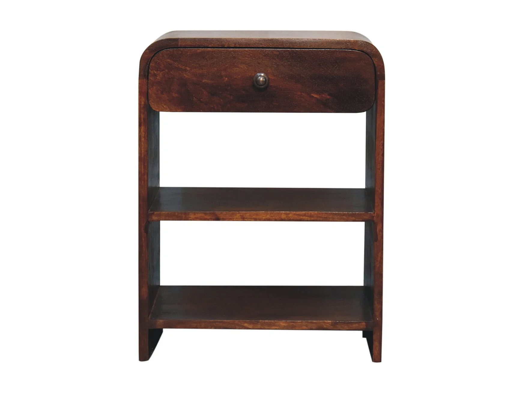 Artisan Furniture Table de chevet ouverte en bois massif de tremble, 1 tiroir et 2 compartiments ouverts, brun foncé