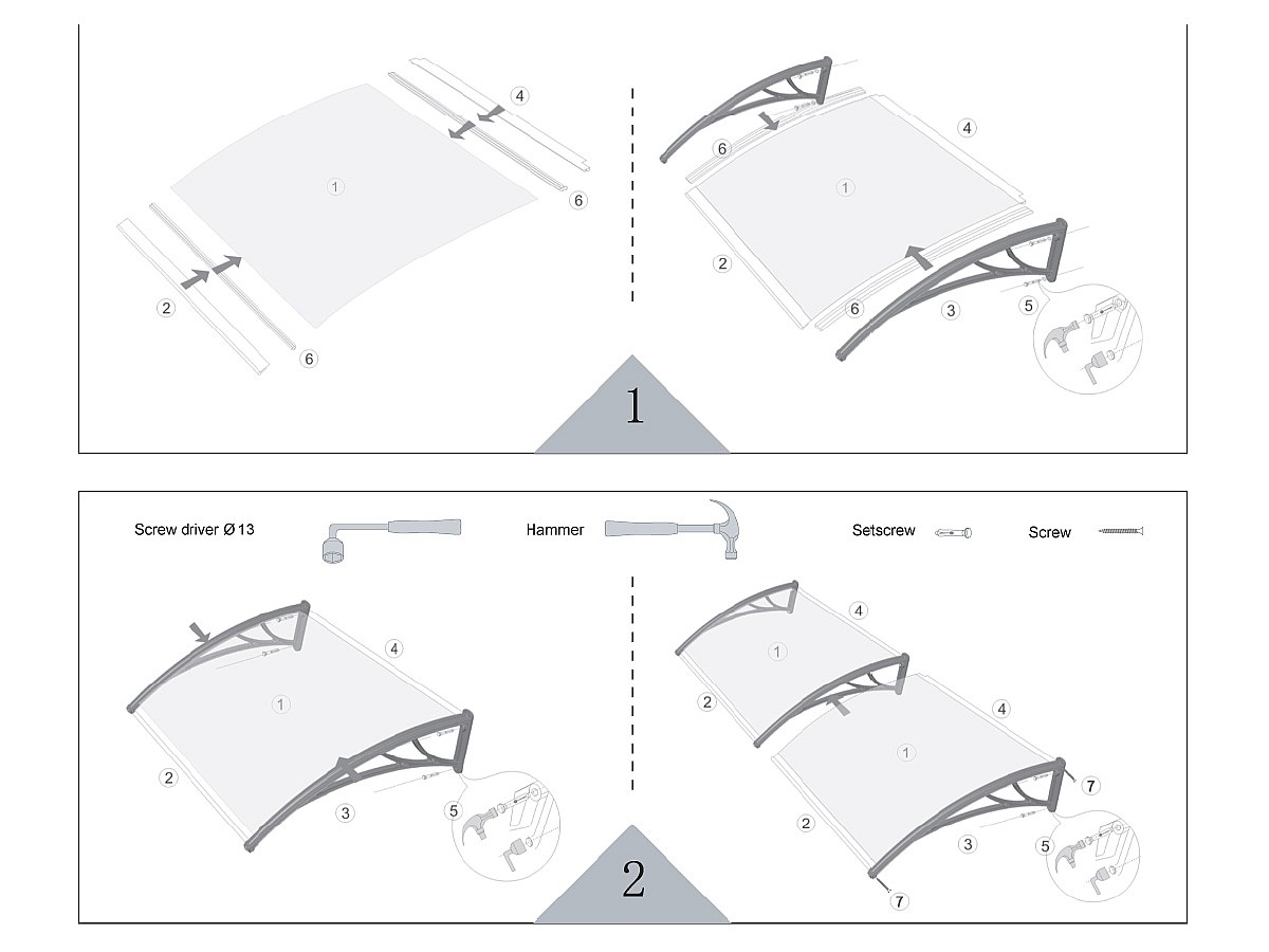Auvent 280*92.5 cm: 1 auvent 140*92.5cm + 1 extension 140*92.5cm