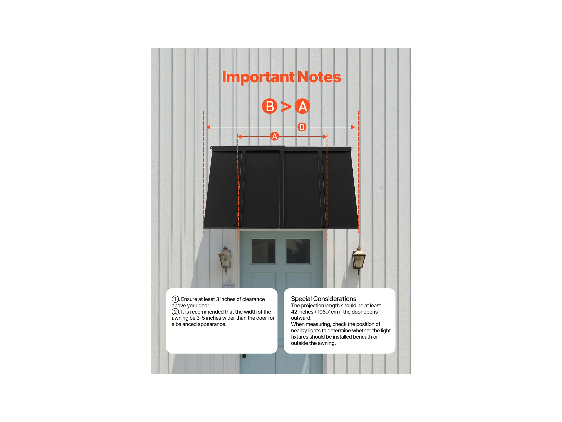 Auvent de Porte d'Entrée SucceBuy, 112,5x61 cm, Marquise de Porte Extérieure Métal, Cadre Acier, Abri de Protection Contre Pluie, pour Portes d'Entrée, Balcons