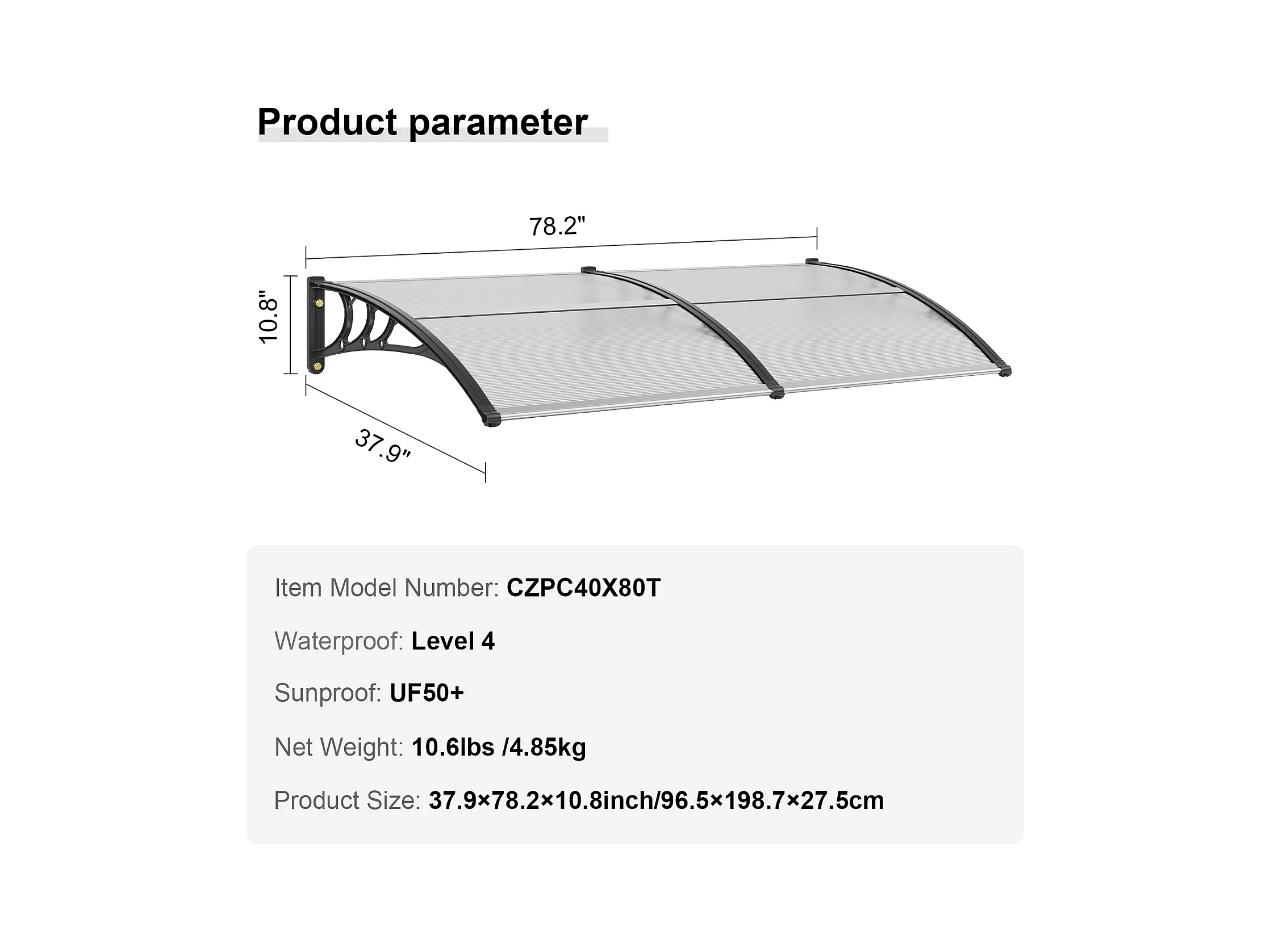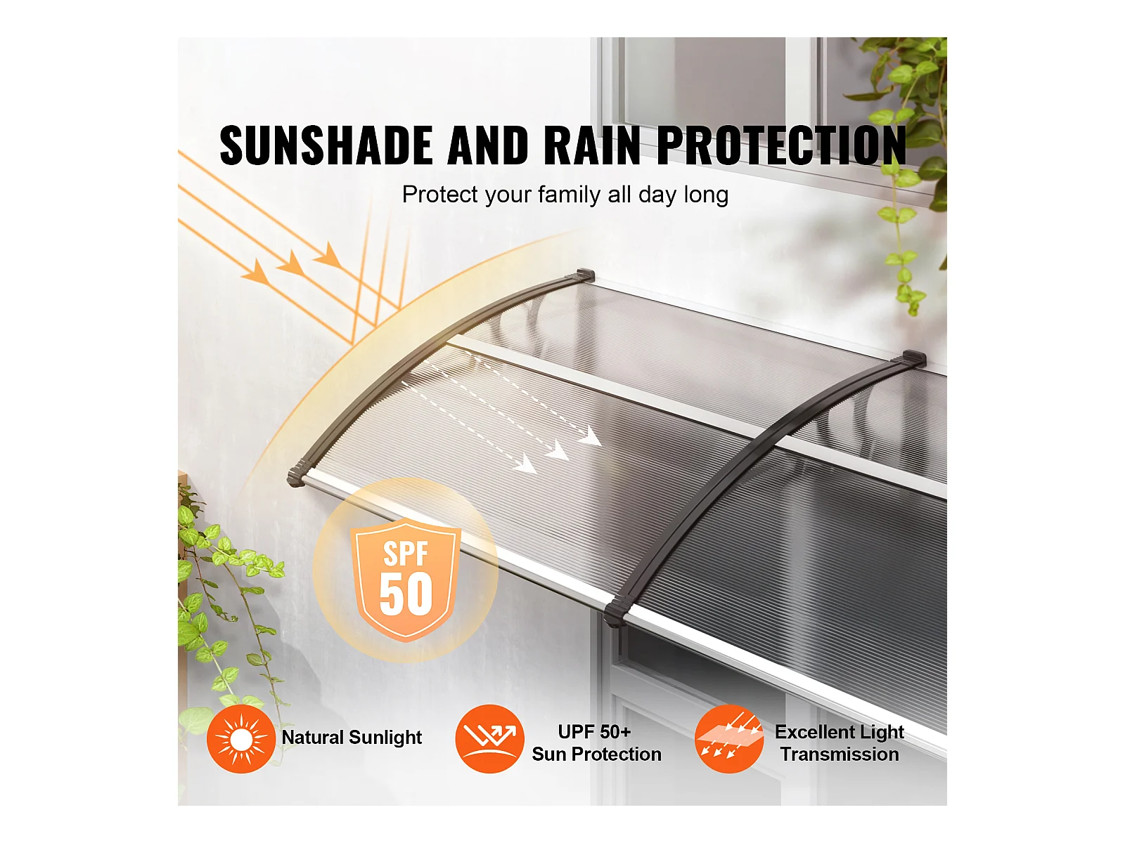 Auvent de Porte d'Entrée SucceBuy Auvent de Porte et Fenêtre, 96.52 x 198.12cm Feuille PC Protection UV et Pluie, Polycarbonate