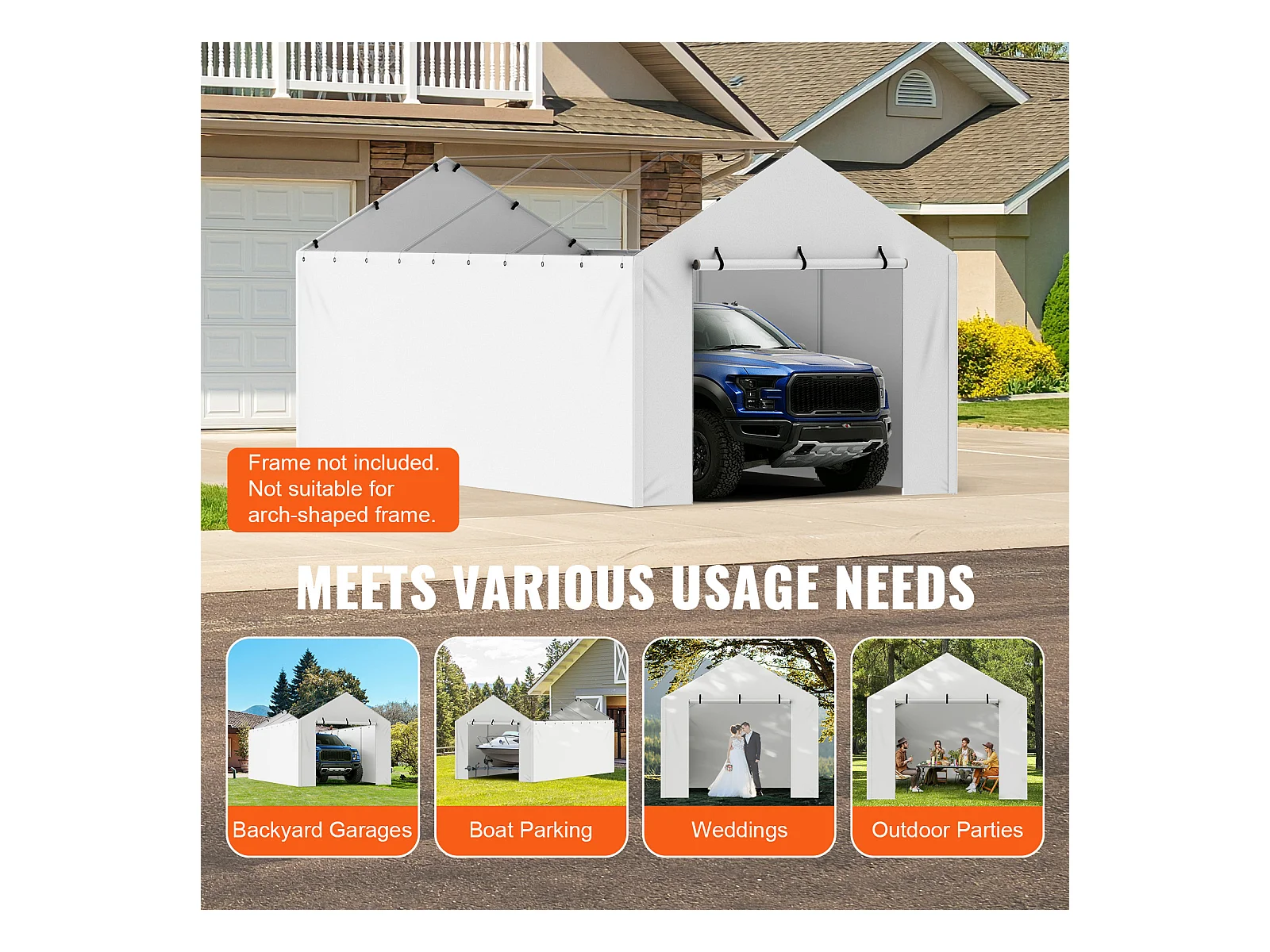 Auvent de Remplacement pour Abri d'Auto SucceBuy, 304,8 x 609,6 cm, avec Paroi Latérale, Blanc