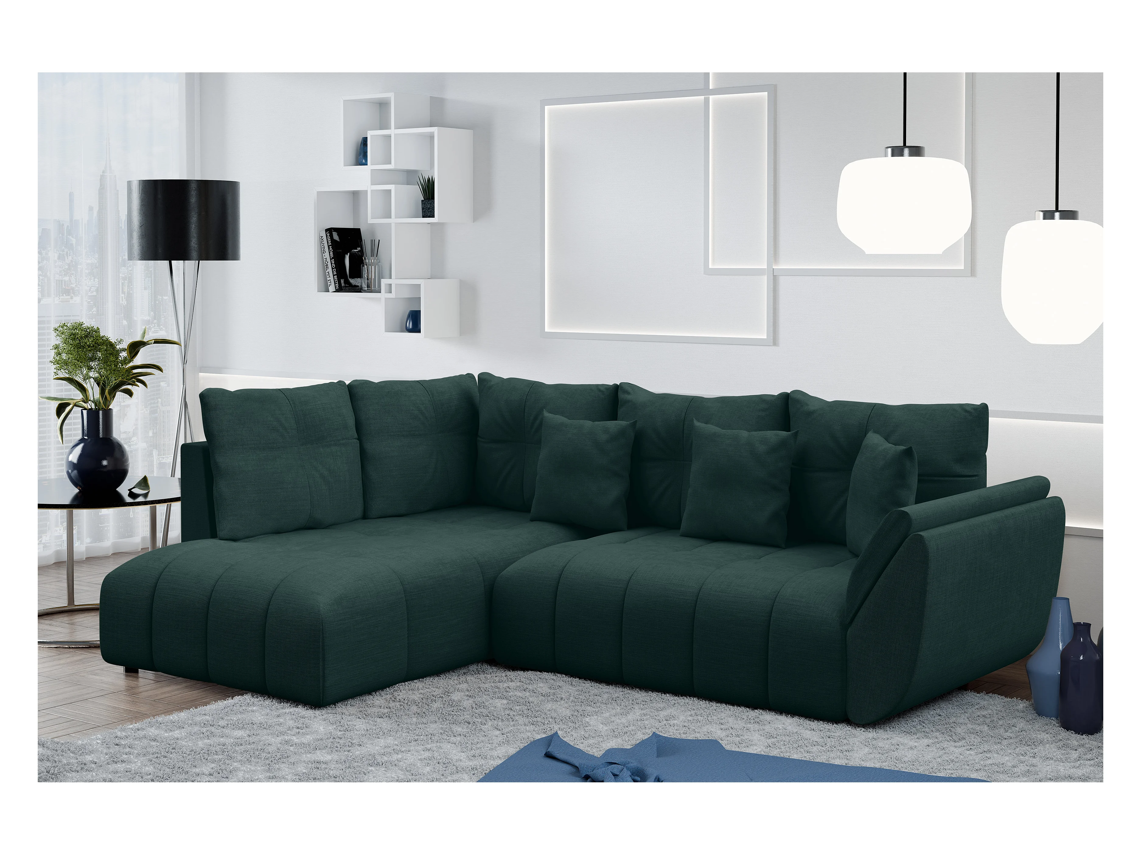 AX LIVING Canapé d angle convertible Corleone canapé angle vert 266 cm
