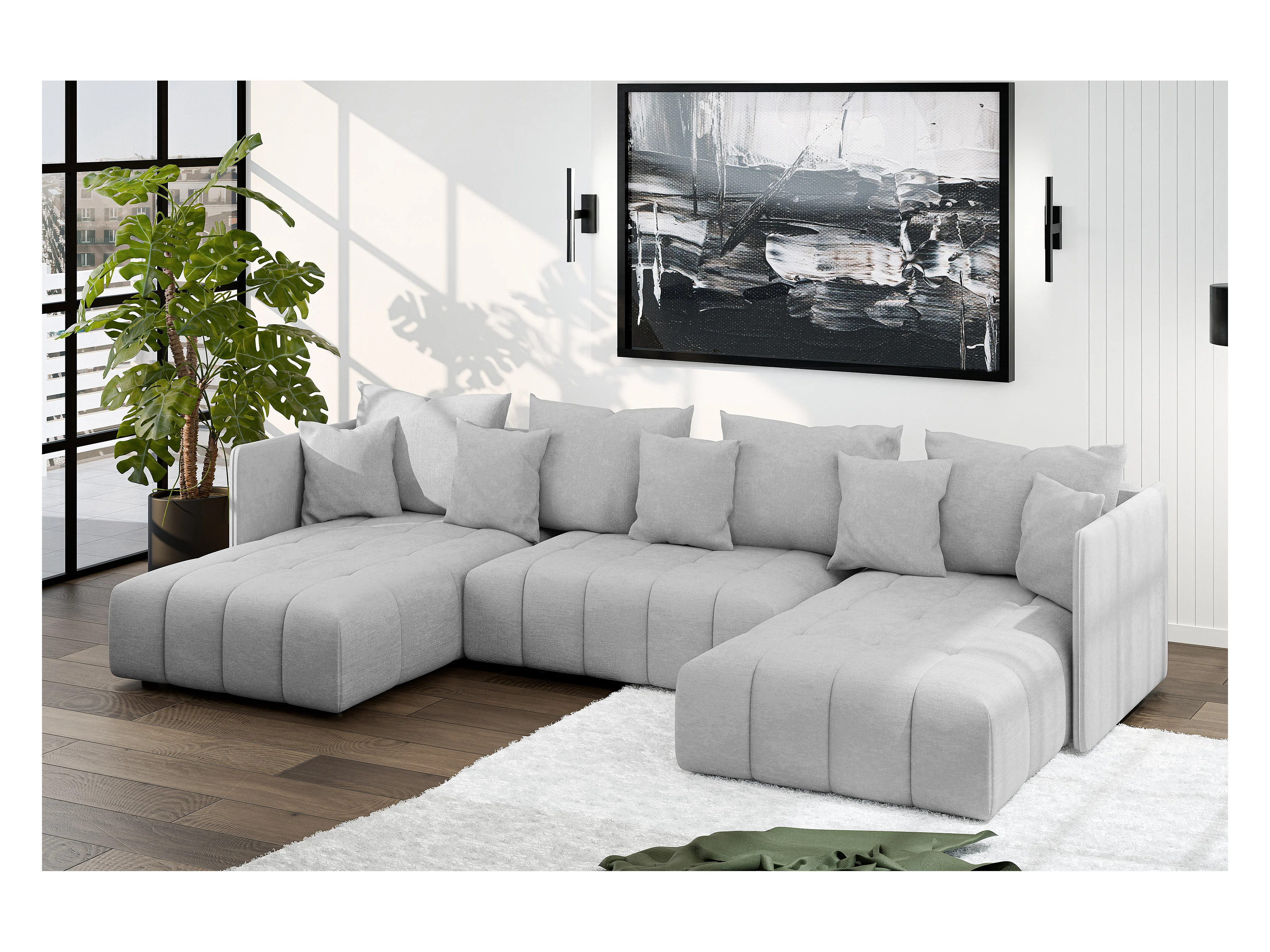 AX LIVING Canapé d'angle U gris clair avec fonction sommeil Veliro 345